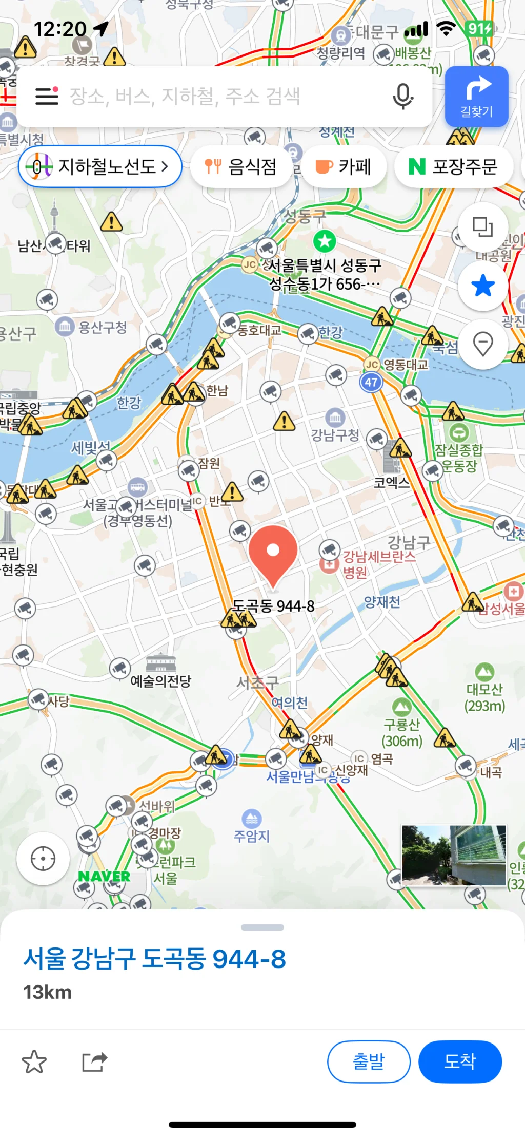 네이버 지도 혹은 카카오맵이 스마트폰에 있다면 이 방법도 꽤 활용도가 높다고 생각하는데요. 지도 앱이 점점 진화하여 다양한 서비스를 하고 있기 때문에 지도 앱 하나 정도는 스마트폰에 설치해 두시면 좋습니다.