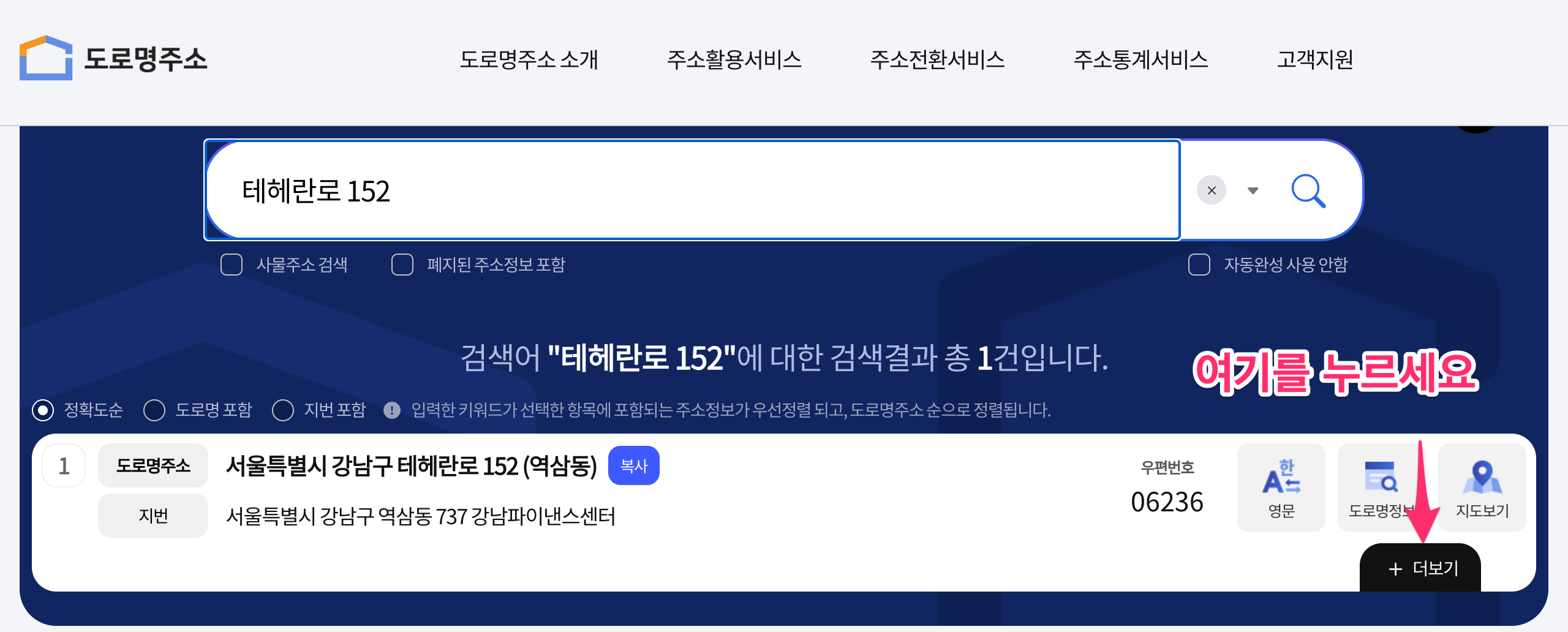 1. 도로명주소로 찾기