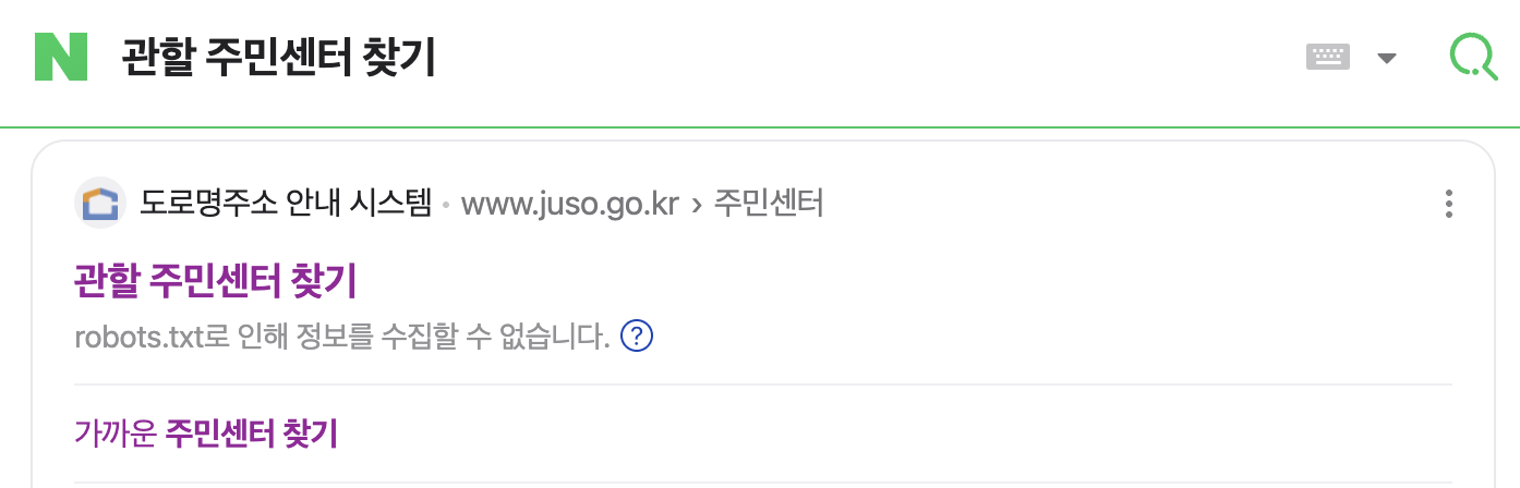 우리가 알게 된 주민센터 전화번호를 기반으로 위치 검색을 해보도록 하겠습니다.