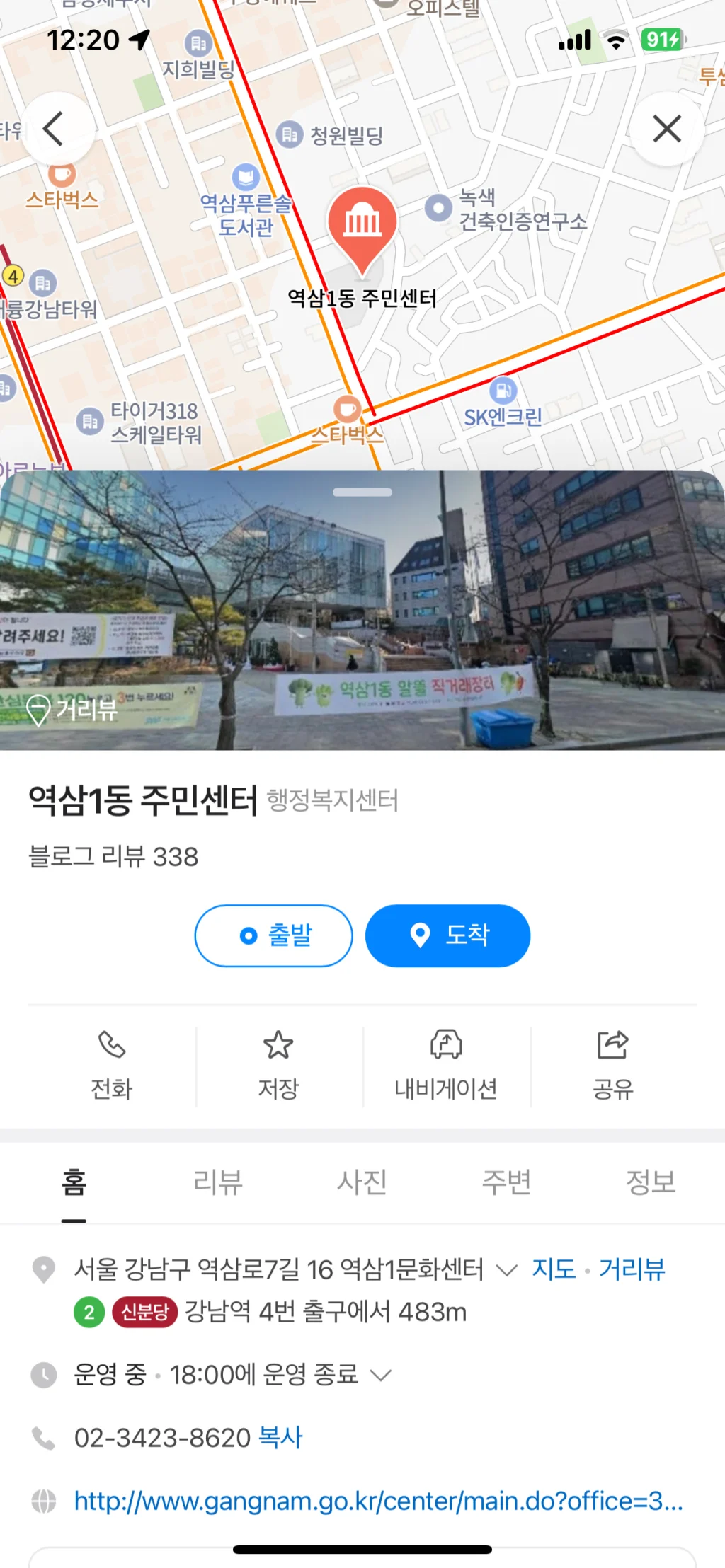 그 결과 아래와 같이 역삼1동 주민센터 위치를 정확히 알 수 있습니다.