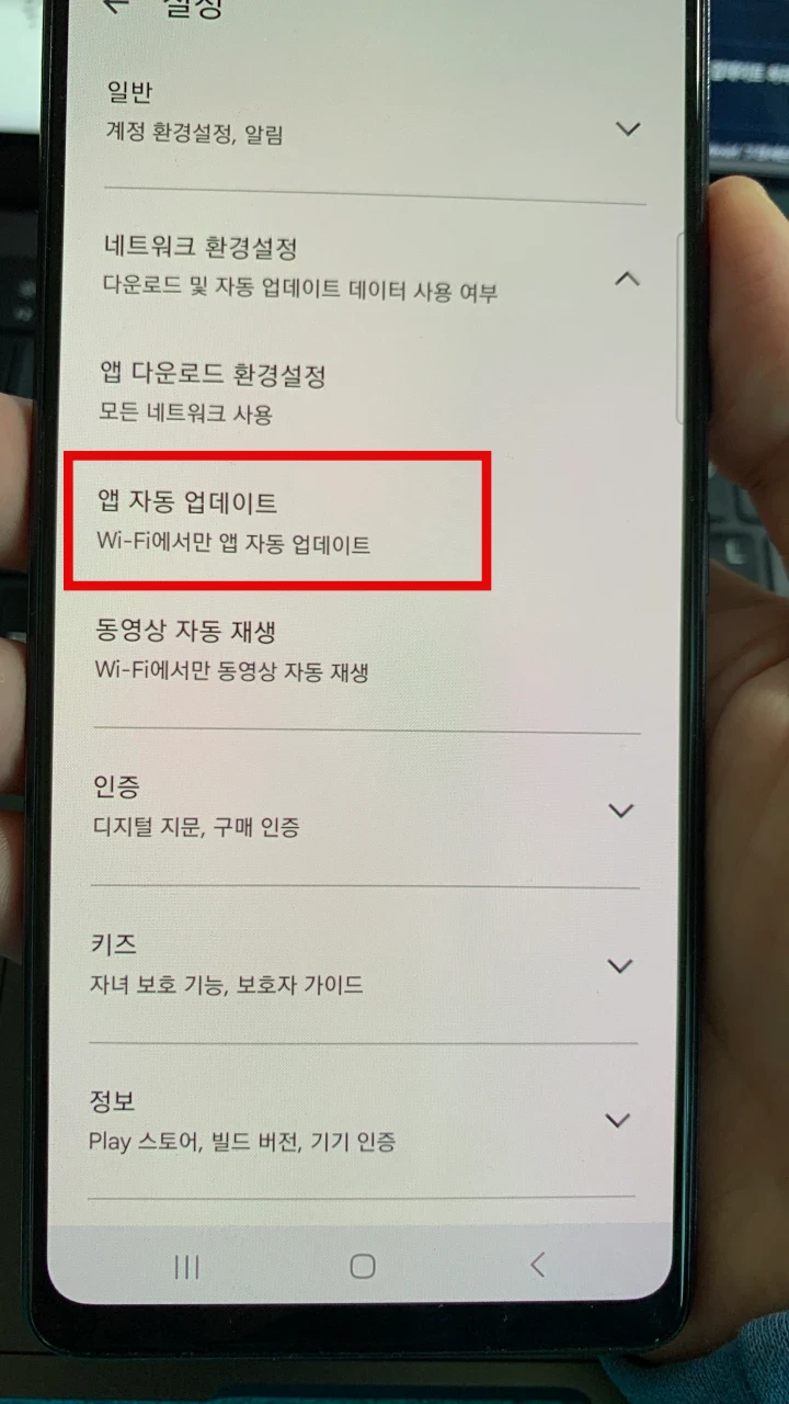 4. "앱 자동 업데이트"를 눌러 주세요.