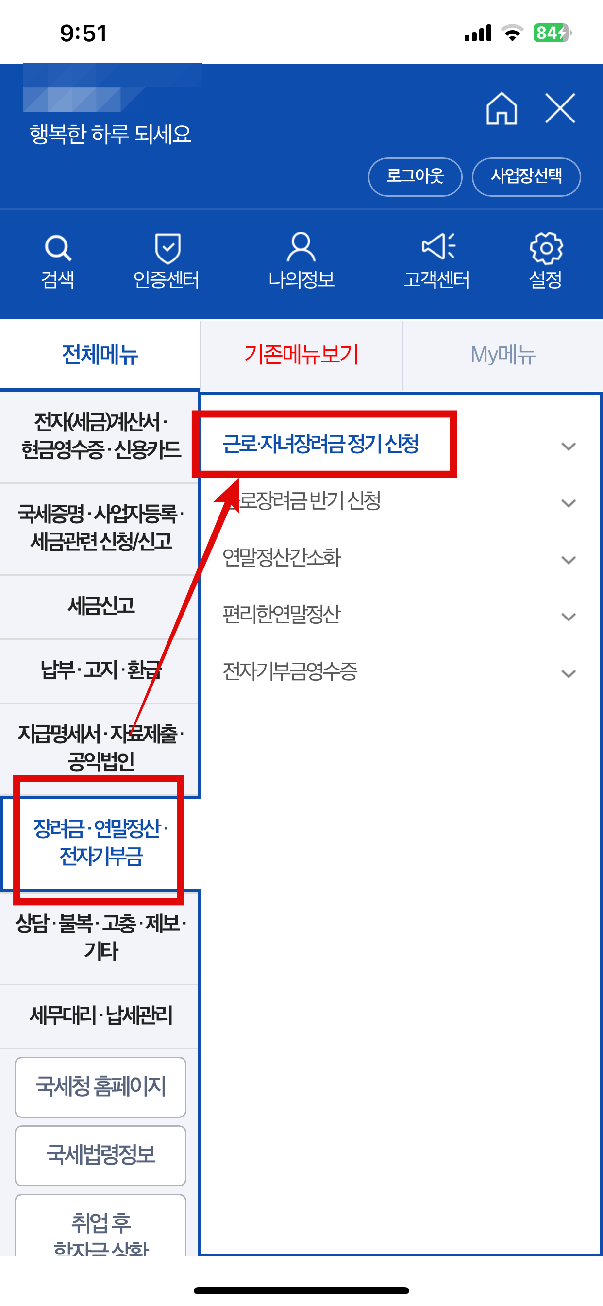 ② 모바일 손택스 앱에서 근로 장려금 확인 <더보기>