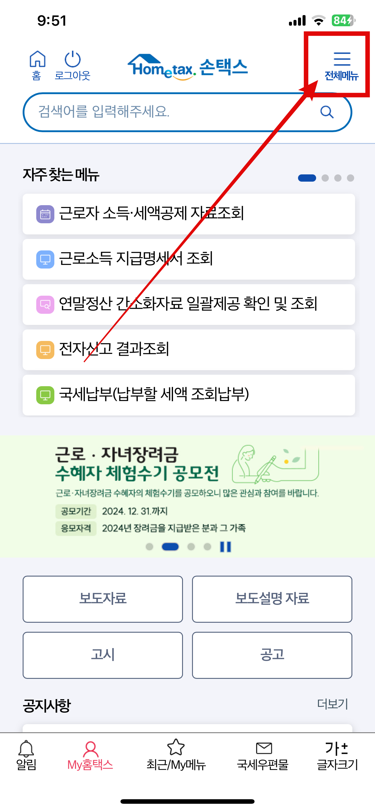 - 홈택스 홈페이지 접속: 홈택스 바로가기