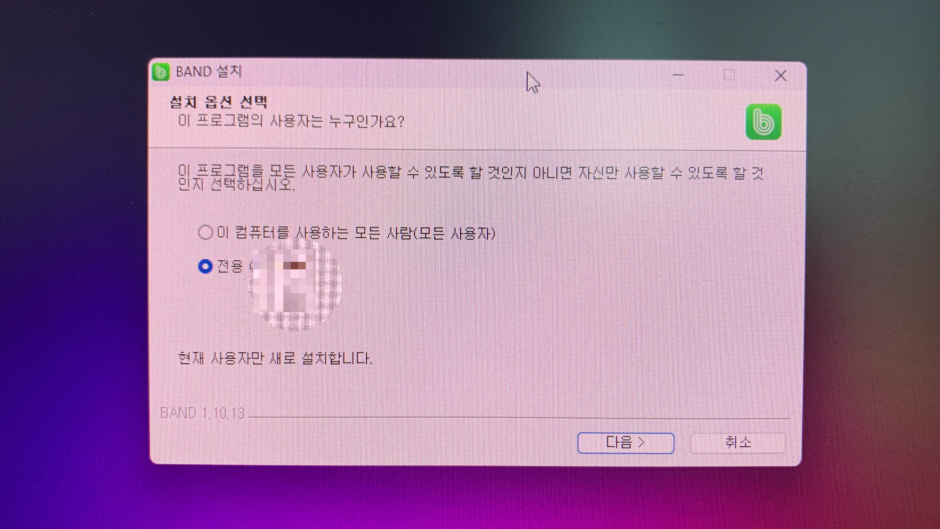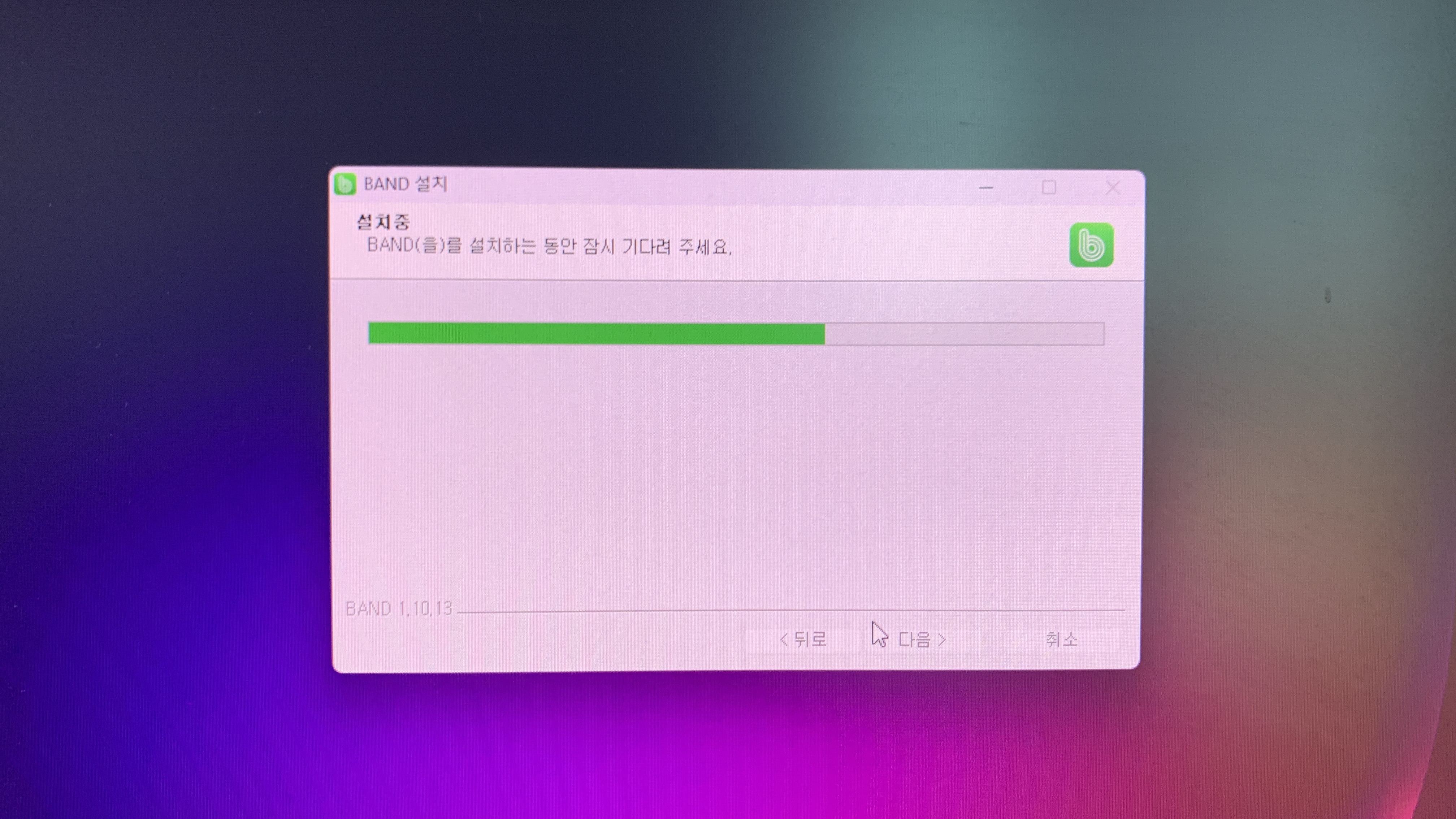 네이버 밴드 pc 버전 설치는 다음다음 설치를 누르고 마침을 누르니 간단히 완료가 되었고요.