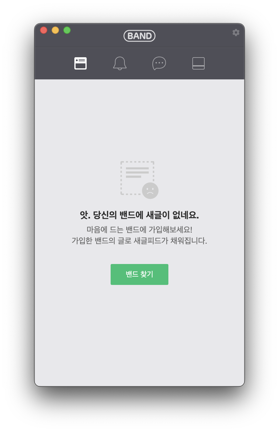 네이버 밴드 PC는 아래와 비슷한 모습을 하고 있더라고요.