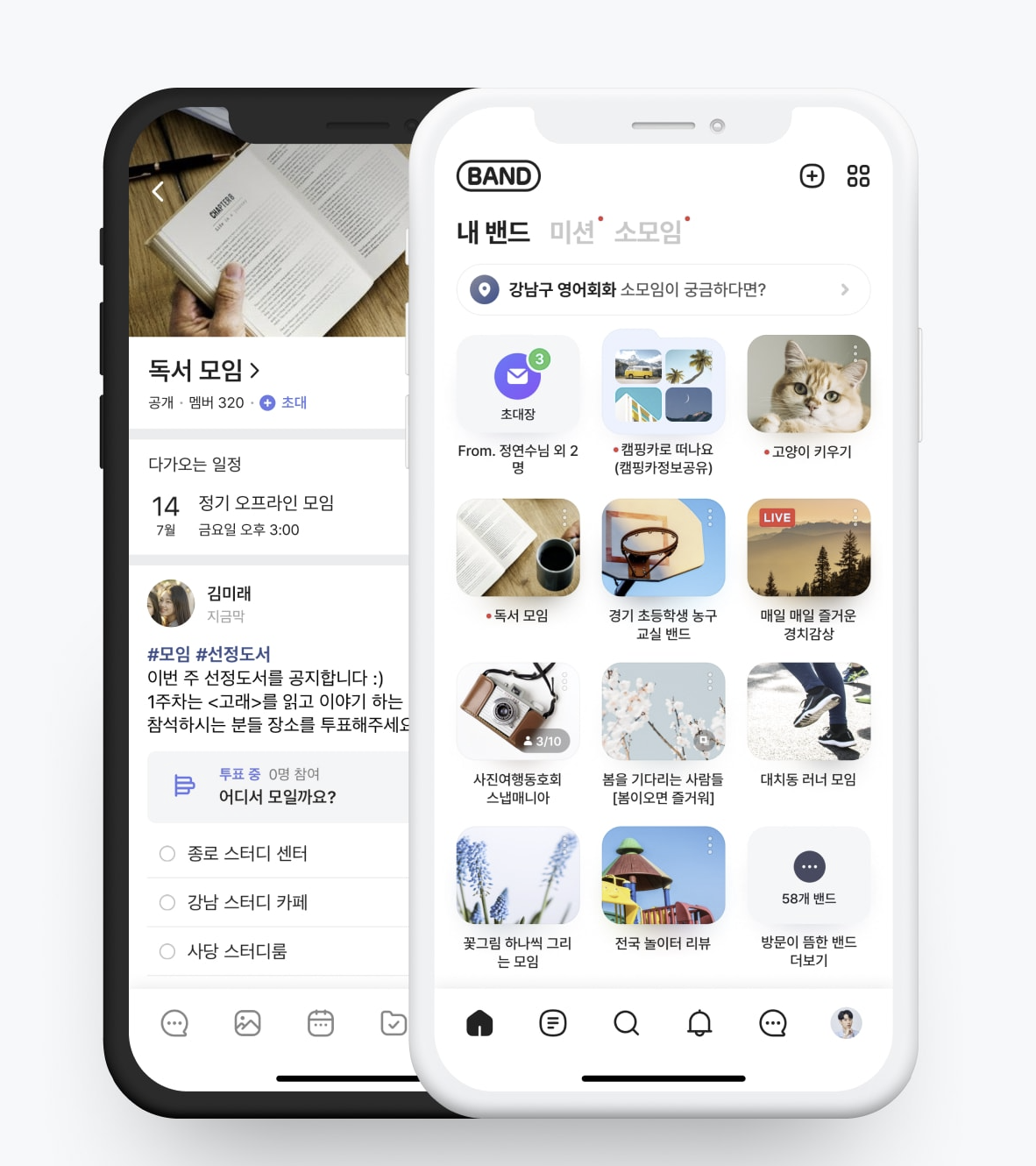 밴드는 그룹 멤버와 함께 하는 공간입니다. 동호회, 스터디, 주제별 모임을 밴드로 시작하세요.