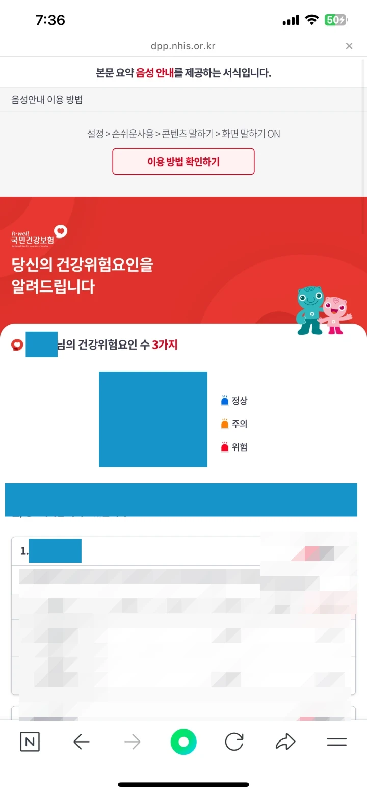 이렇게 전자문서로 본인인증이 완료되니 건강위험요인을 알려주는 문서가 보이네요.