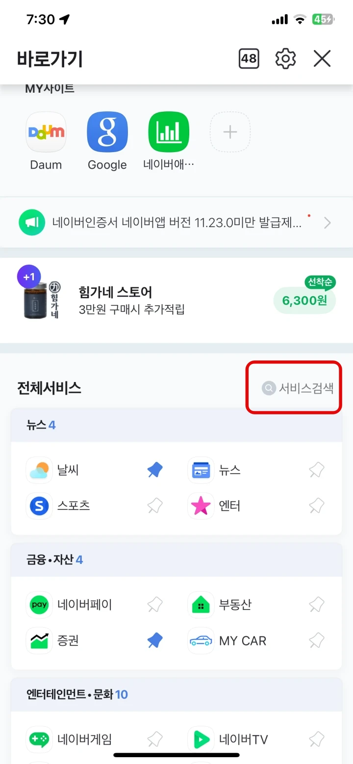 네이버 앱에서 제공하는 서비스는 참 다양합니다. 그렇기 때문에 눈으로 하나하나 확인하면서 찾는게 여간 번거롭고 때로는 힘든 일이 아닐 수 없는데요.
