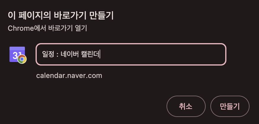 크롬 브라우저 - 네이버 캘린더 바로가기 만들기