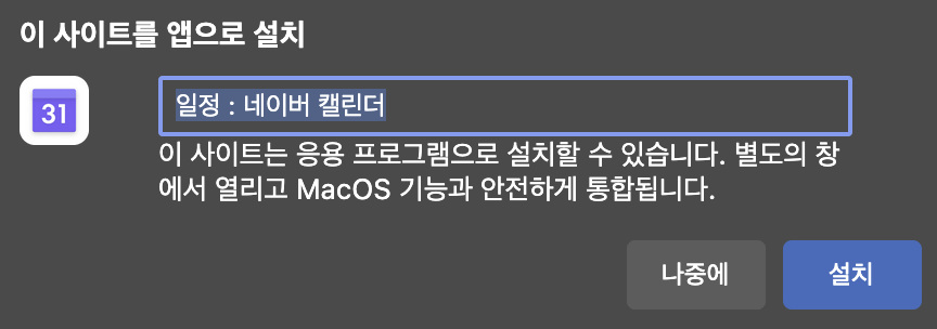 3. '설치'를 눌러서 네이버 캘린더 pc 다운로드를 완료해 주세요.