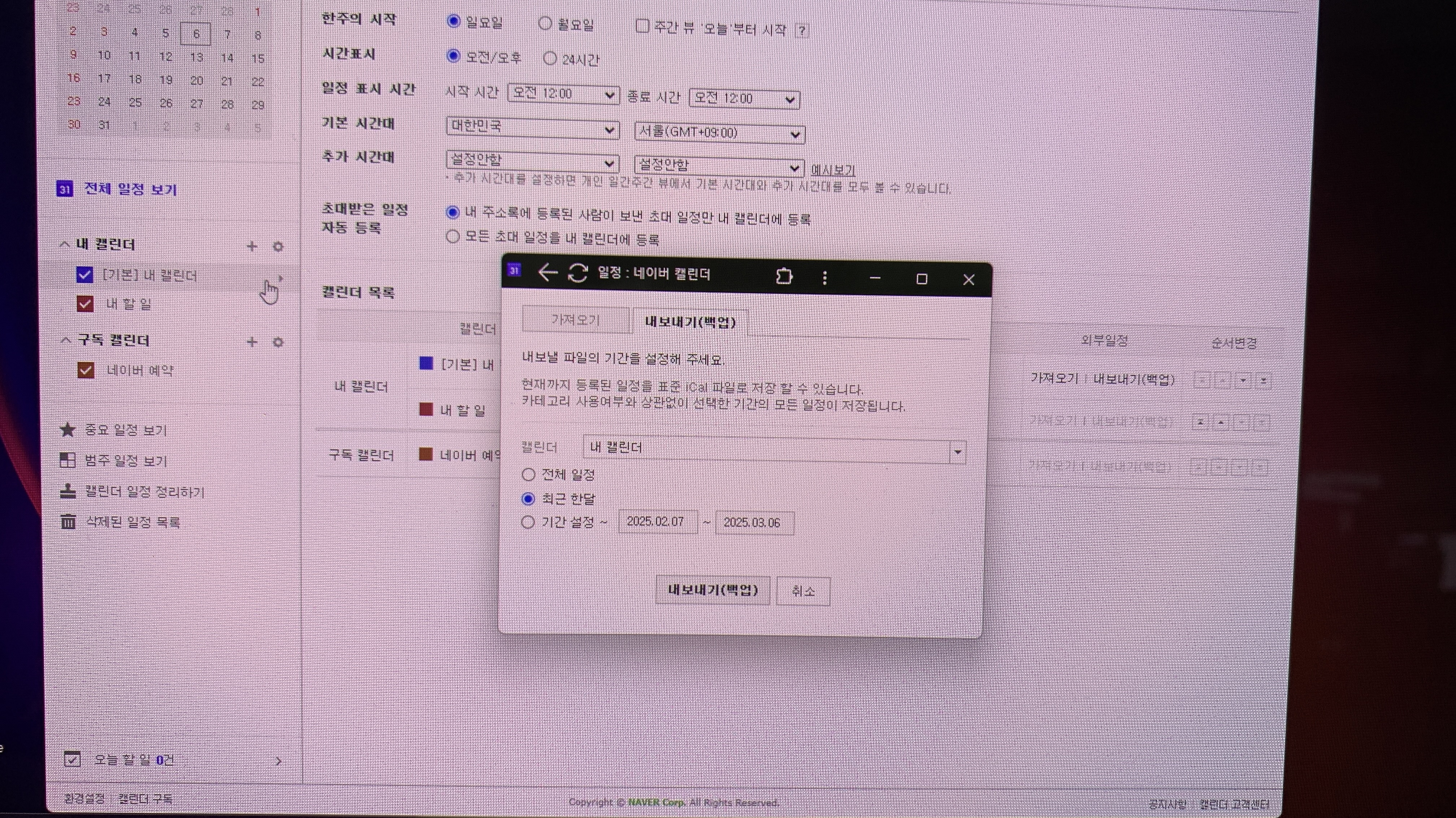 Q2. 네이버 카렌다 일정 백업 및 복원 방법이 있나요?