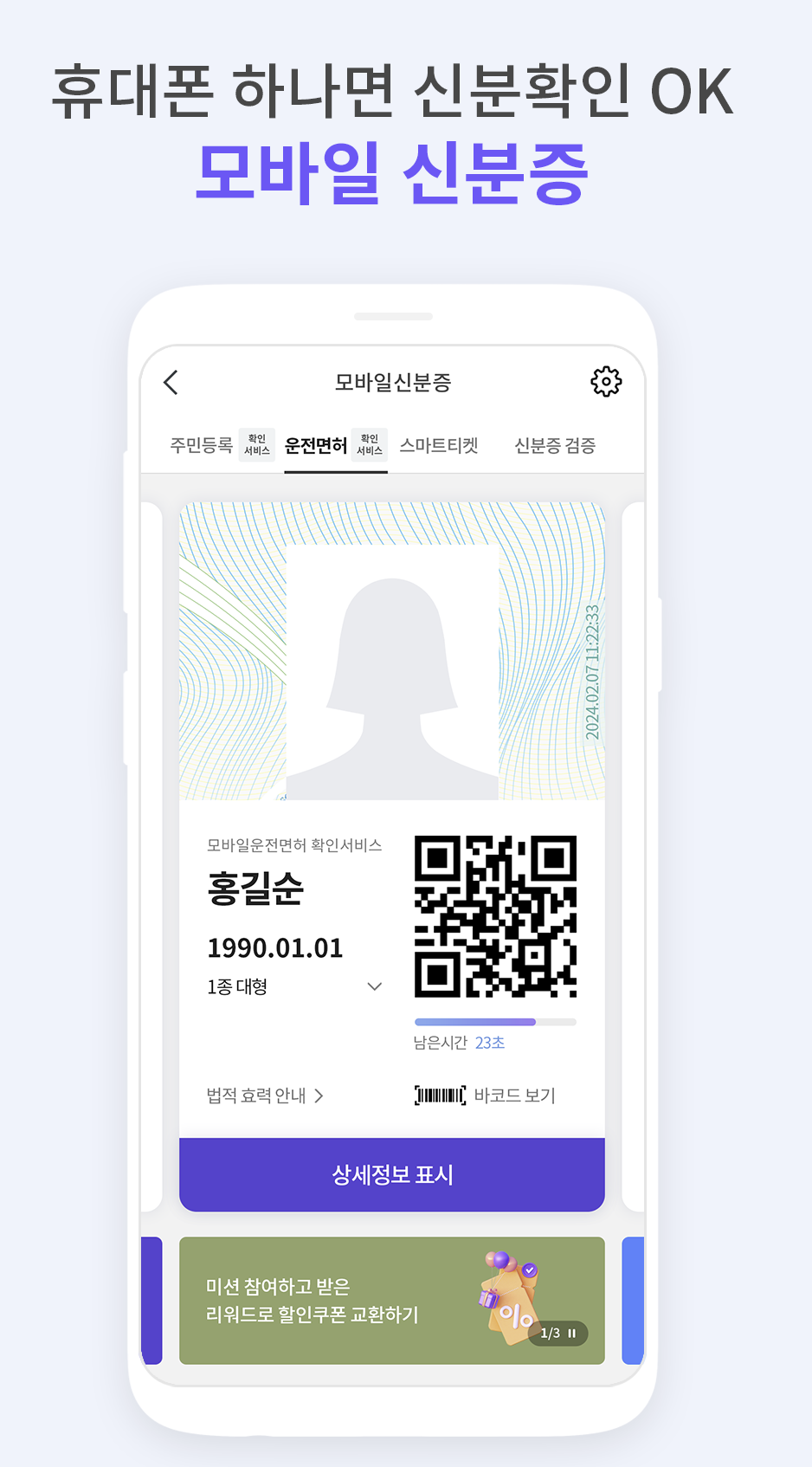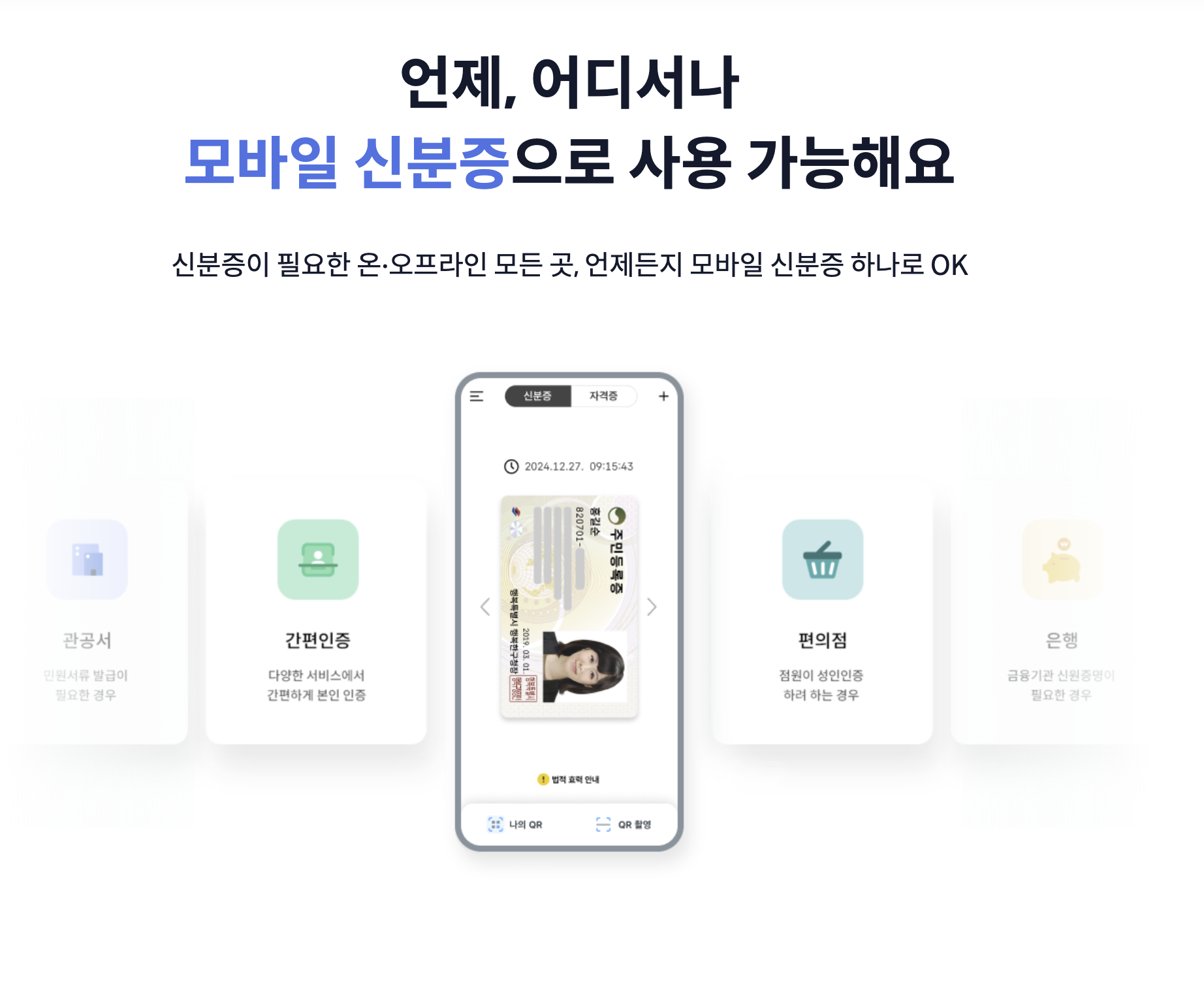 이제는 그럴 필요가 없어지는 거 같은데요. 우리가 보통 스마트폰은 꼭 손에 쥐고 다니니까요. 공감하시나요? 이제는 지갑을 두고 나왔어도 신분증이 없어서 난감해하는 상황이 없어질 듯한데