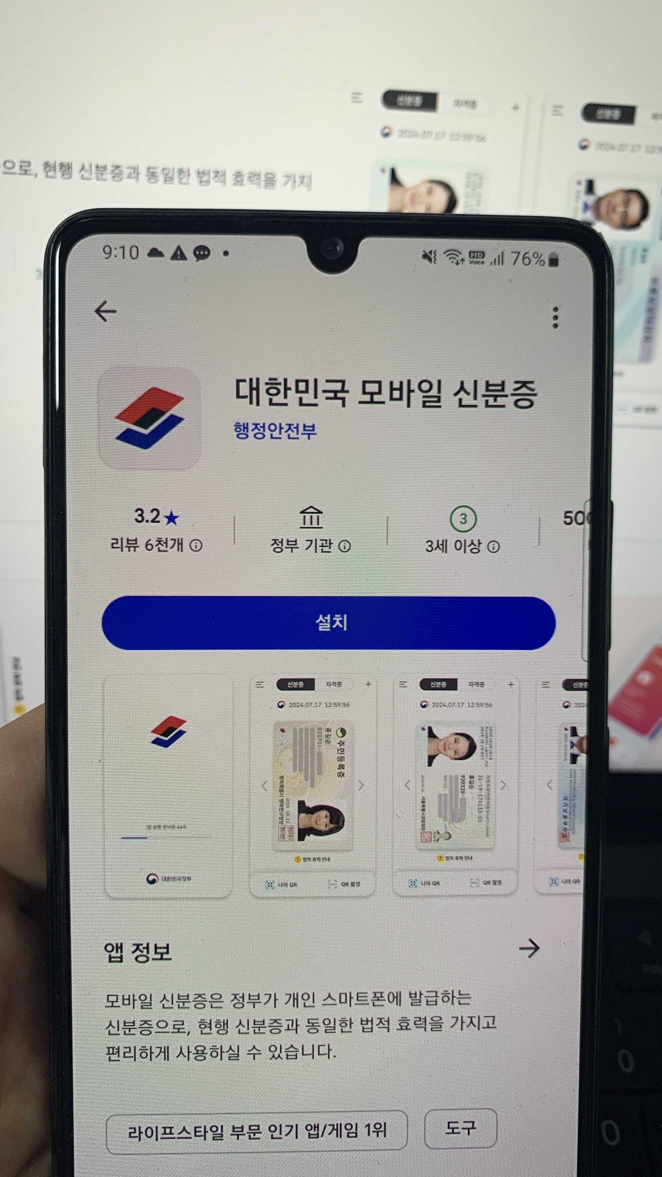 모바일 신분증 앱을 설치하기 위한 과정, 검색하는 화면 찍음 - 1모바일 신분증 앱을 설치하기 위한 과정, 검색하는 화면 찍음 - 2