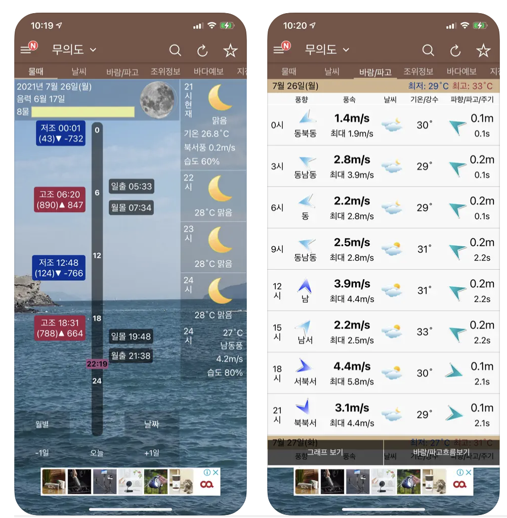 물때와날씨 그리고 경쟁앱 비교해 보기