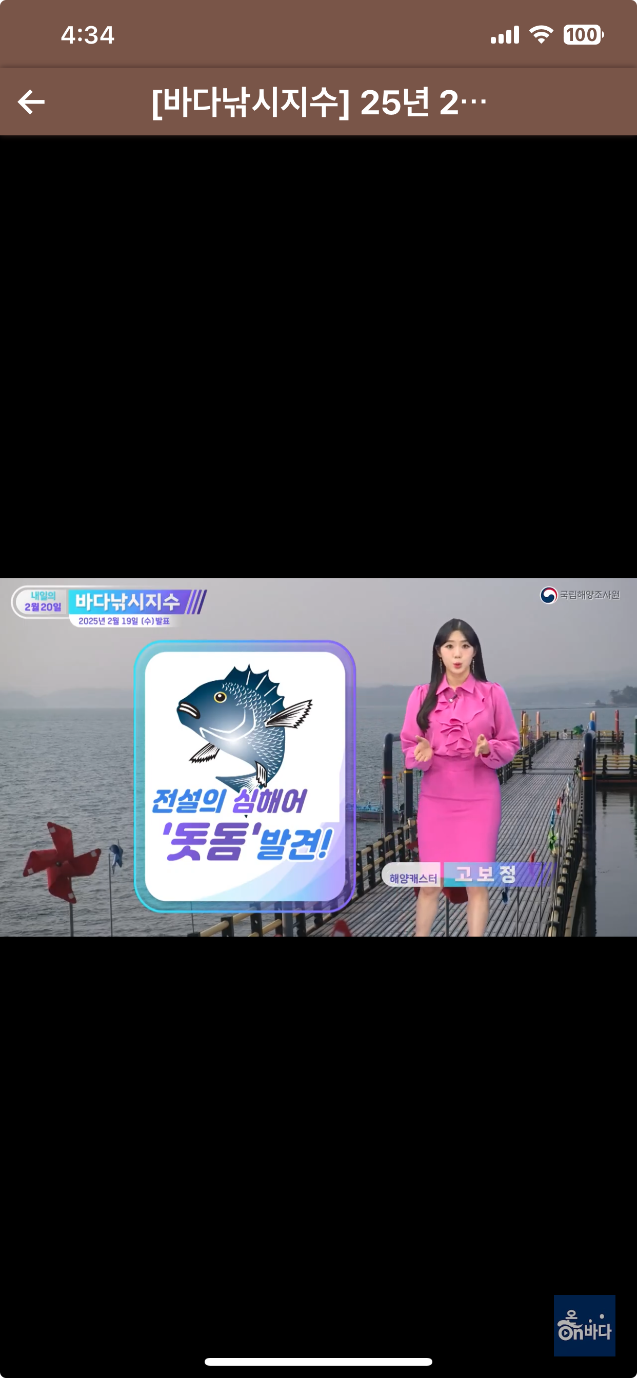 바다낙씨 동영상물때와날씨 환경설정 화면