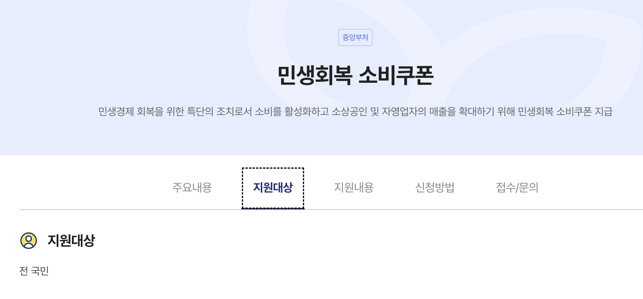 지원대상 : 전 국민. 단 신청을 하셔야 해요~~!!