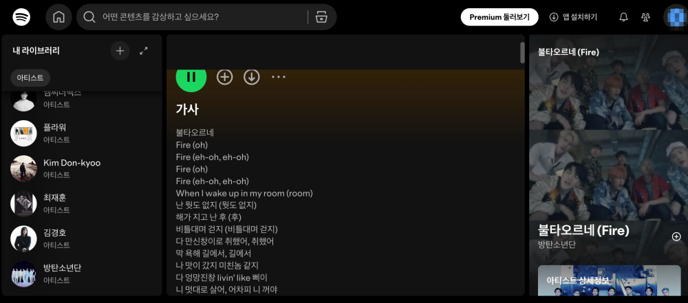 스포티파이 설치하고 이렇게 또 기분 좋은 날이 되었네요.