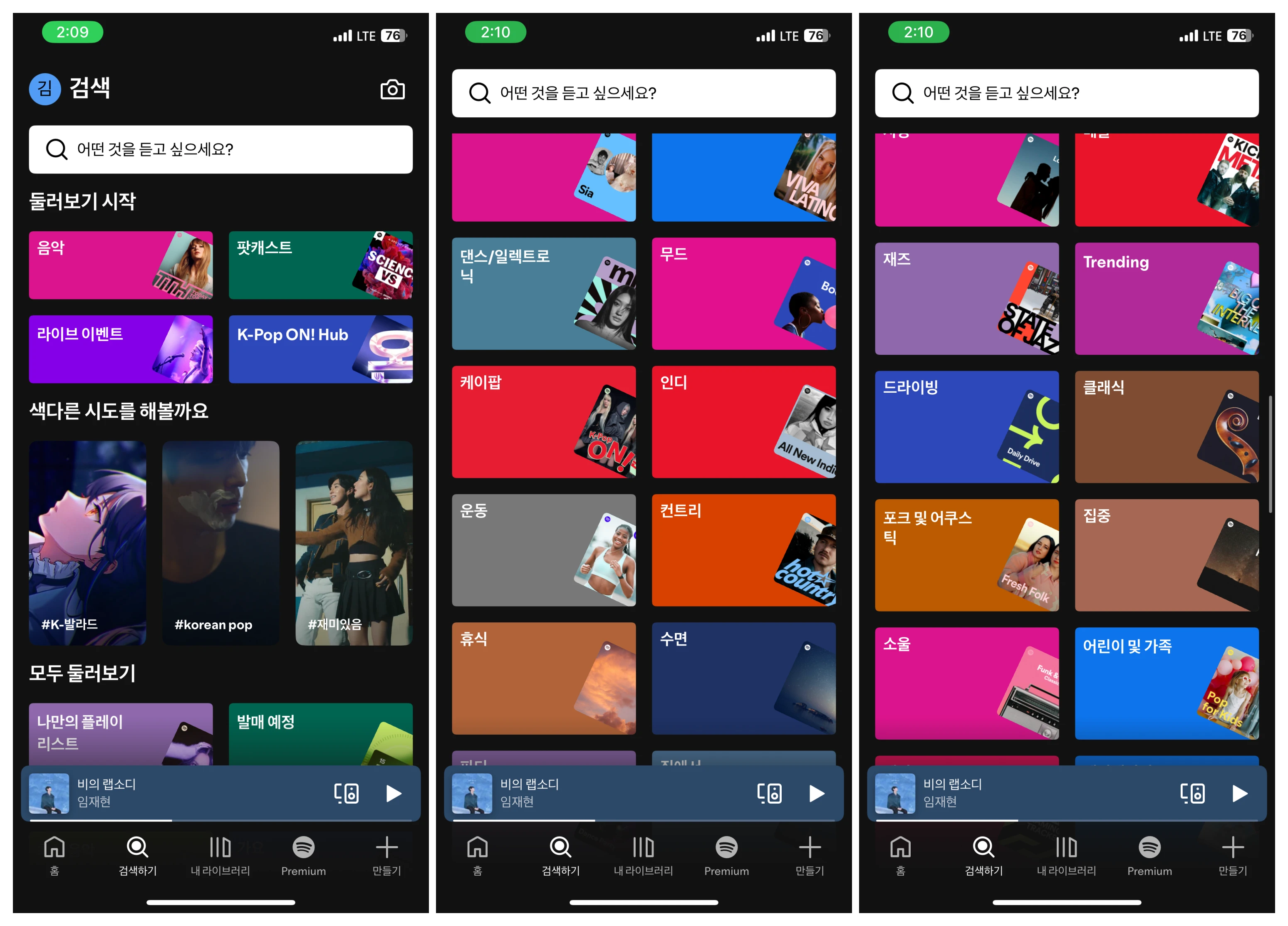 스포티파이 40대 이상도 충분히 쉽게 사용할 수 있는 앱이라고 판단됩니다.