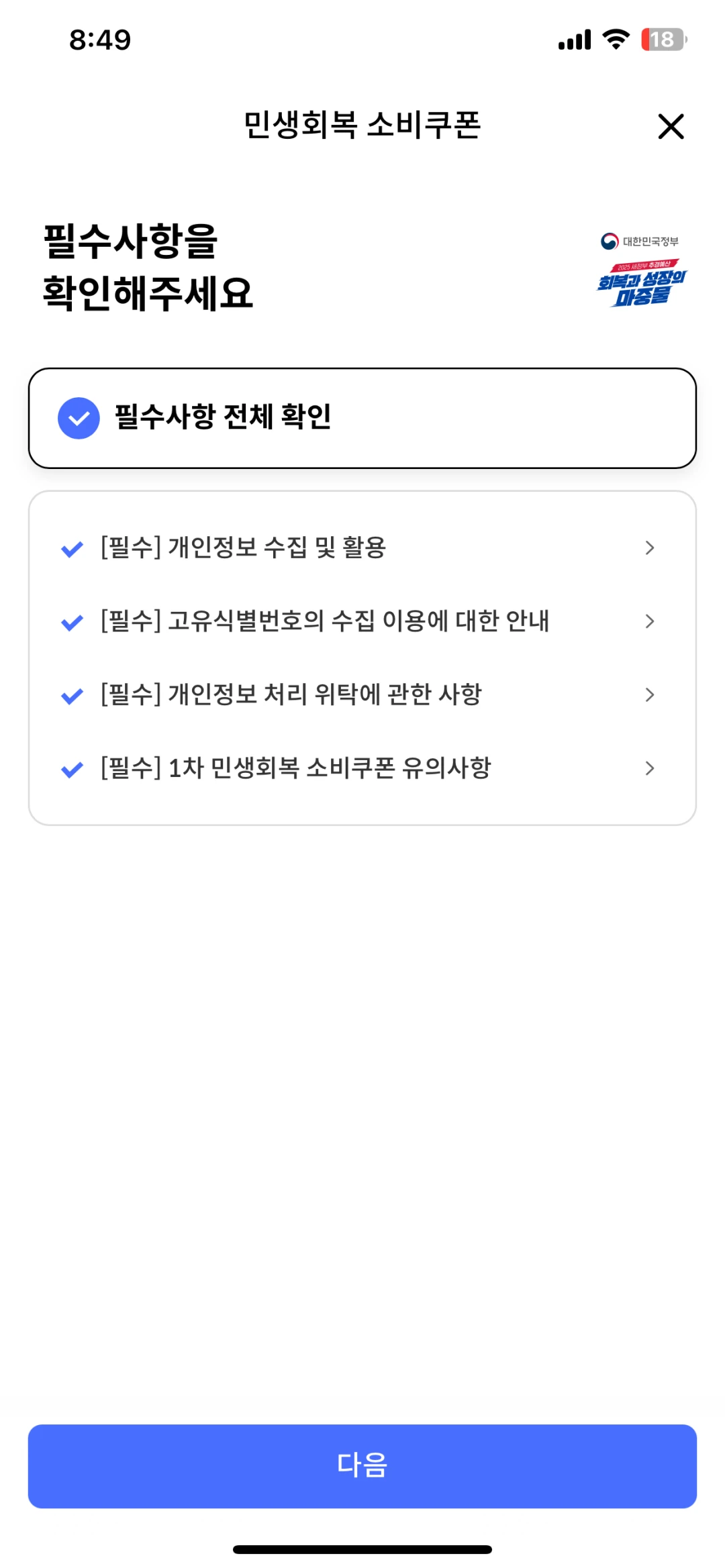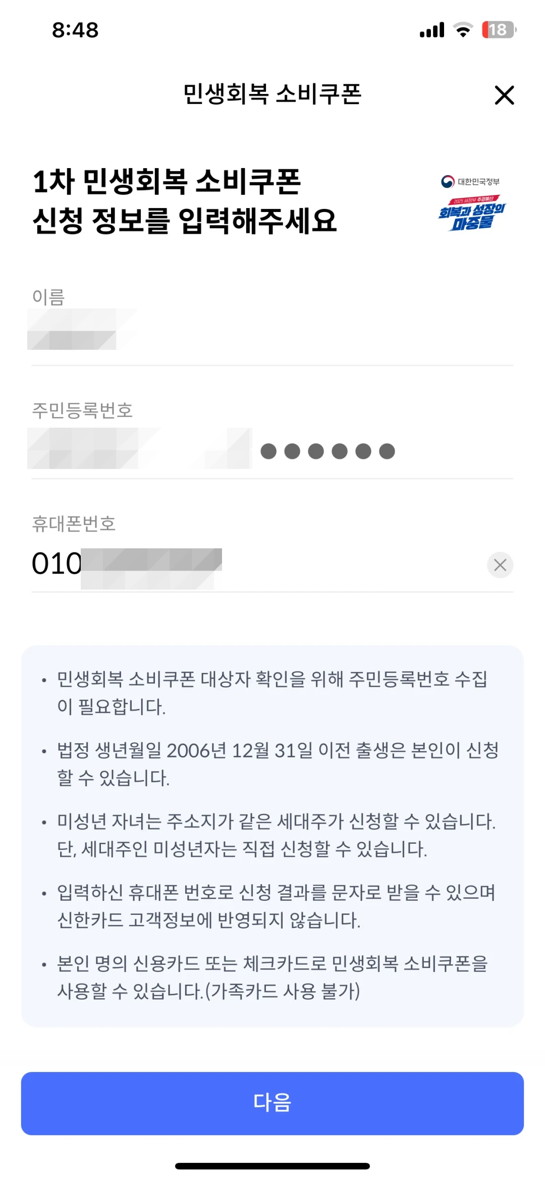 5. 1차 민생회복 소비쿠폰 신청합니다.