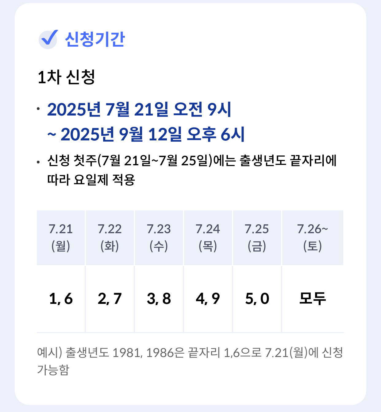출생년도 끝자리에 따라 신청하시면 됩니다.