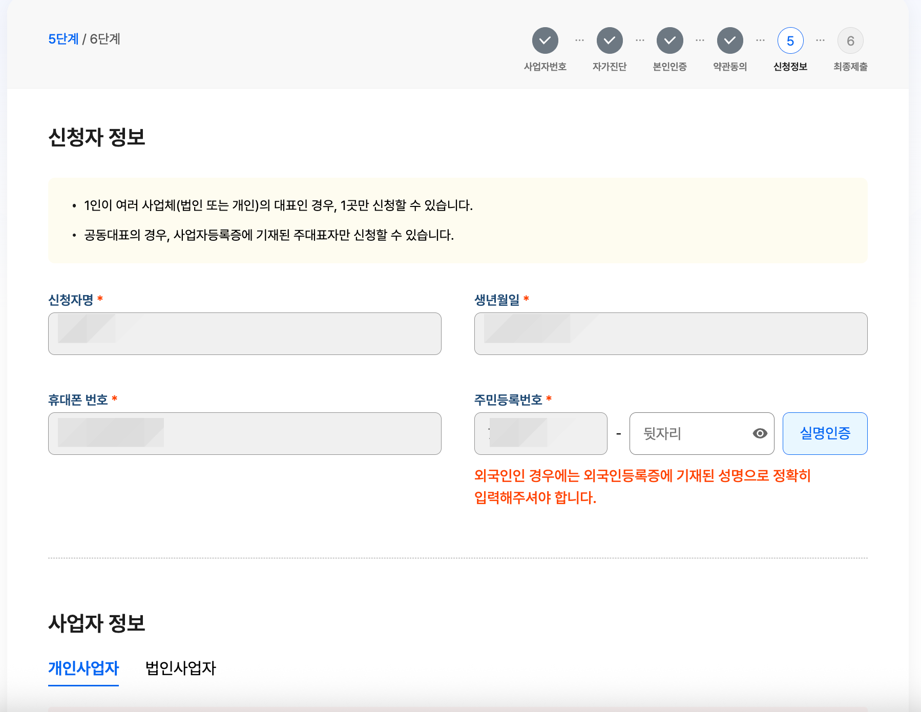 여기서는 문서에 담긴 내 정보와 사업자 정보가 정확히 맞는지 확인하시고요.