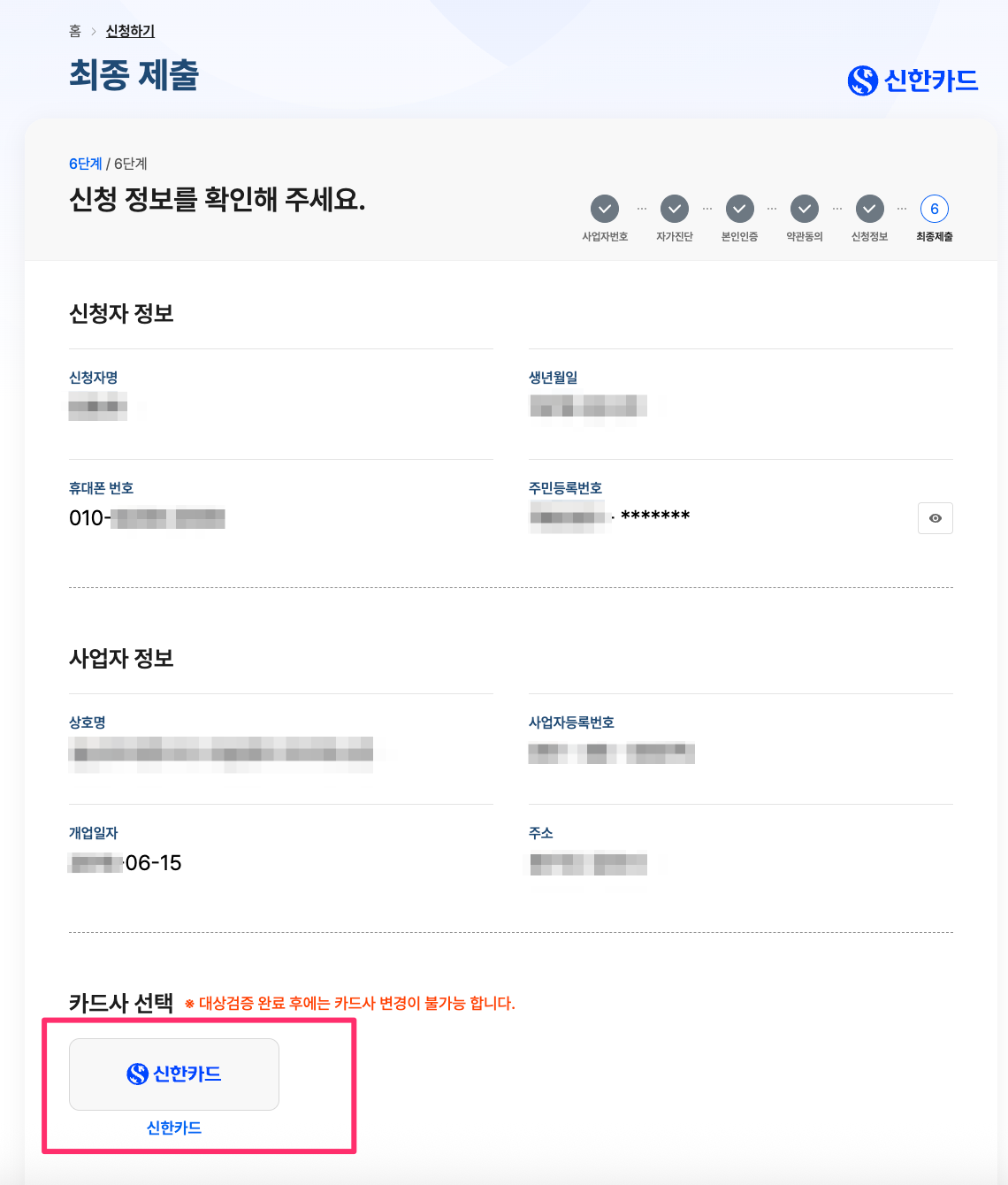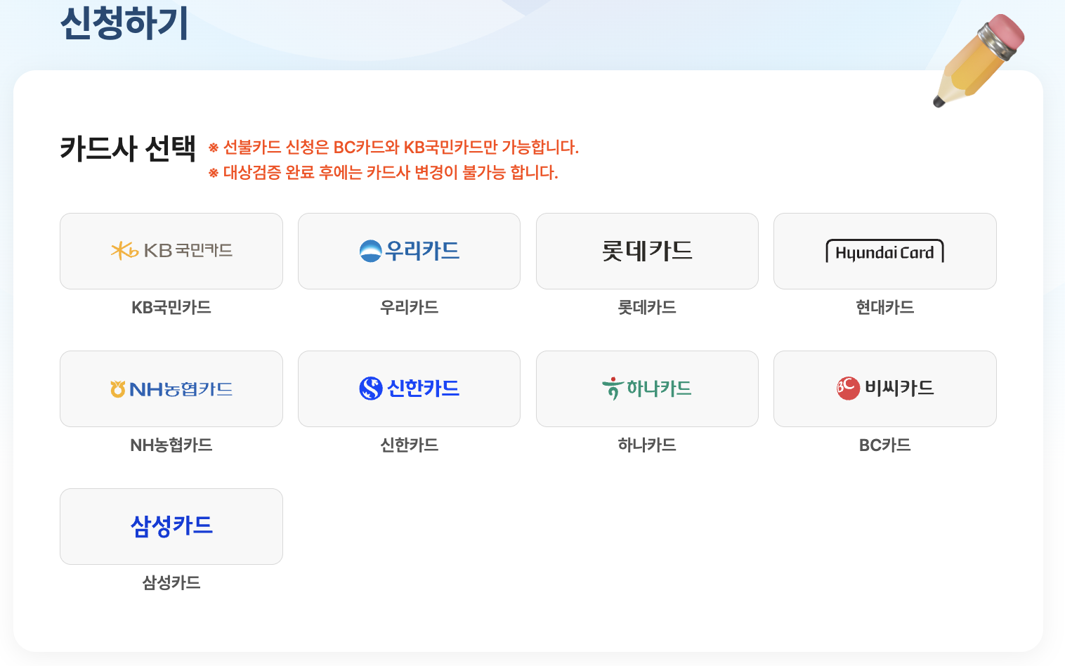 > 카드사는 대상검증 완료된 이후에는 카드사 변경이 불가하다는 점 숙지하시고요~