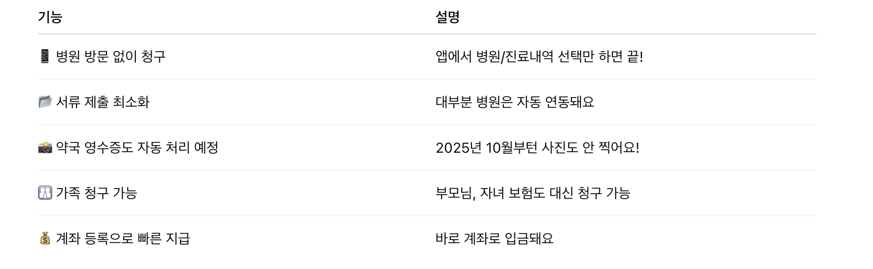 보험금 청구부터 병원 진단서까지 직접 받으러 갈 필요를 없게 해주는 앱입니다.