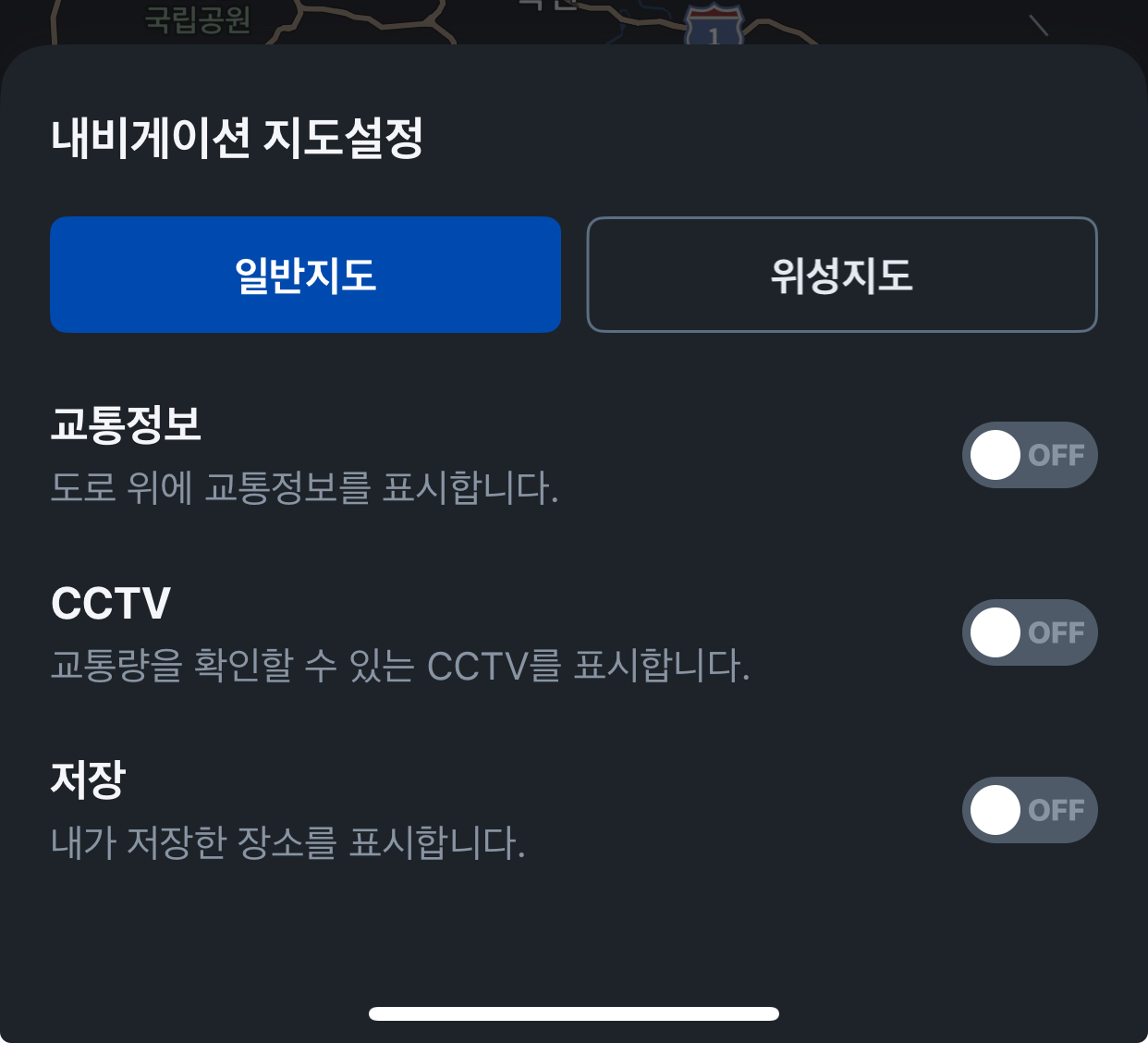 (최근목적지, 집으로, 회사로 등의 보이는 창을 내려 주세요.) - 지도 설정 메뉴를 눌러 주세요.