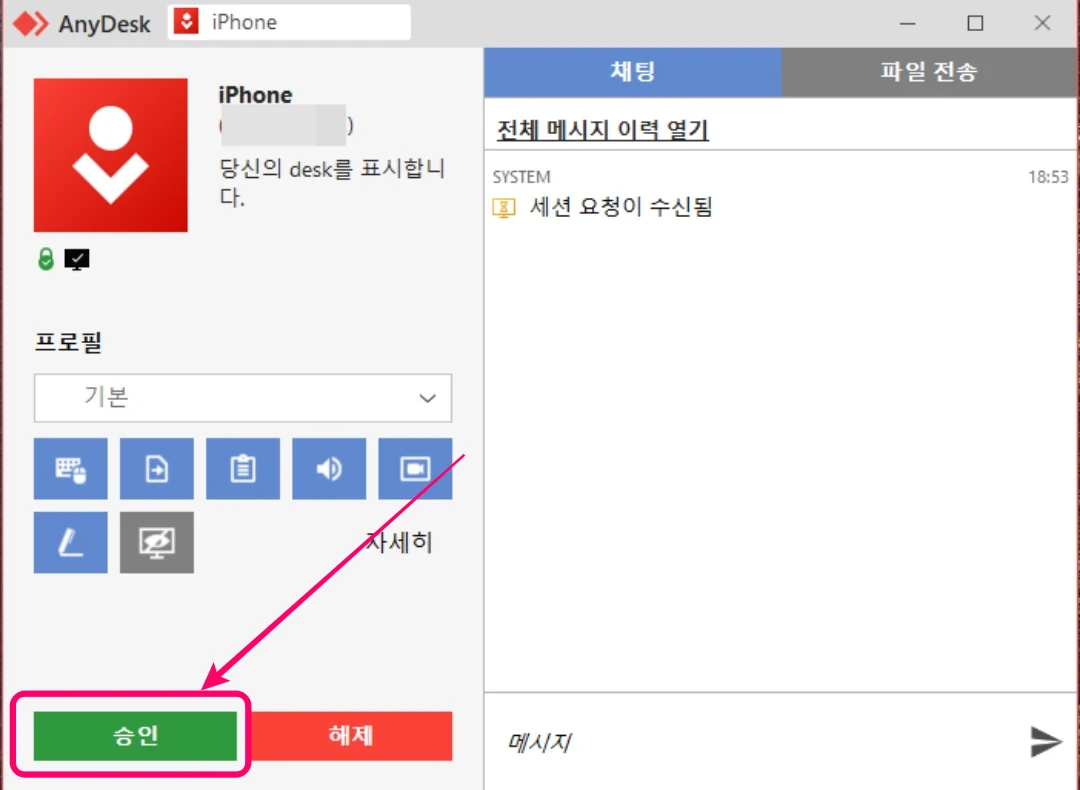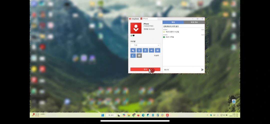 이렇게 되면 상대방이 내 pc 혹은 기기에 접속한 상태가 됩니다.
