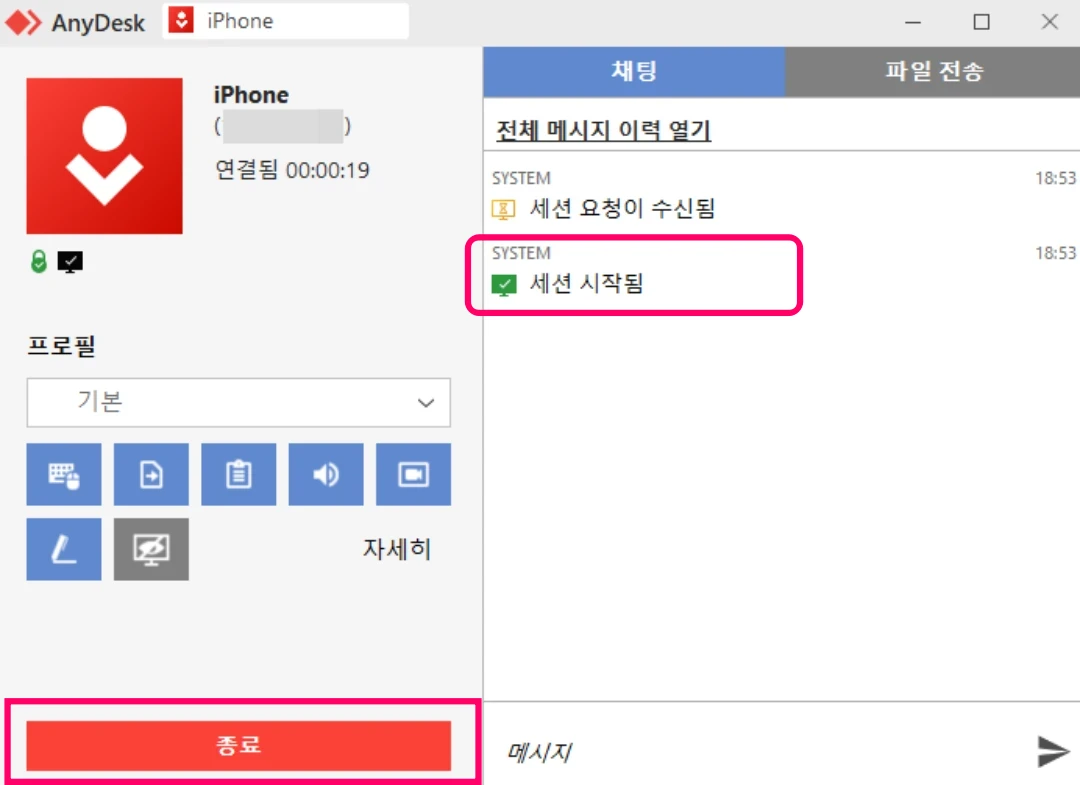 4. 상대방이 수락하면 원격 접속이 완료됩니다.