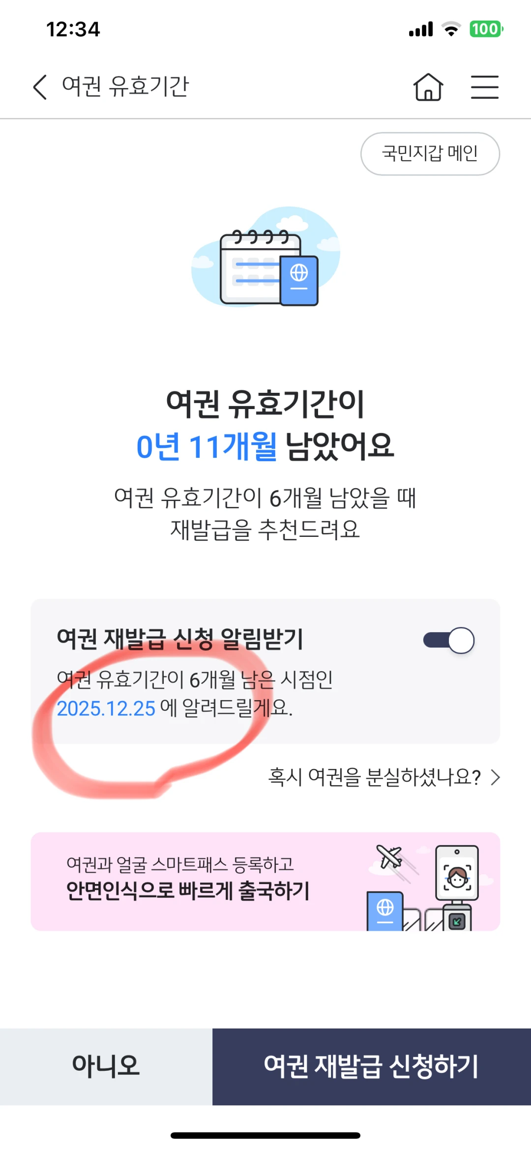오 신기하게도, 2025년 12월 25일에 딱 6개월이 남는 시점인네요. ^^; 괜히 기분이 좋아지는 이유는 뭘까요? 여하튼 이 시점 이후에 여권 재발급 온라인 신청을 저는 하려고 합니다.