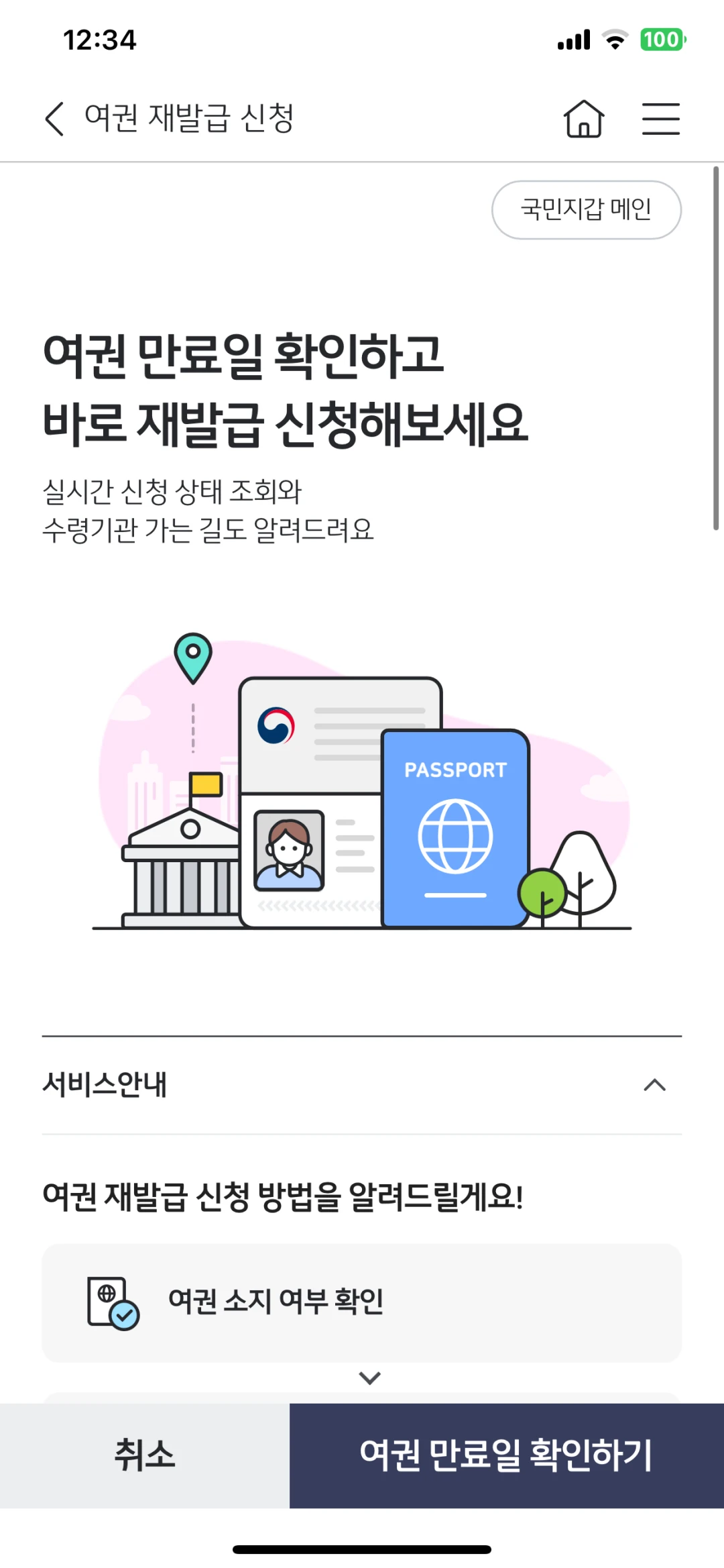 여권 만료일 확인 후 바로 재발급 신청이 가능합니다.