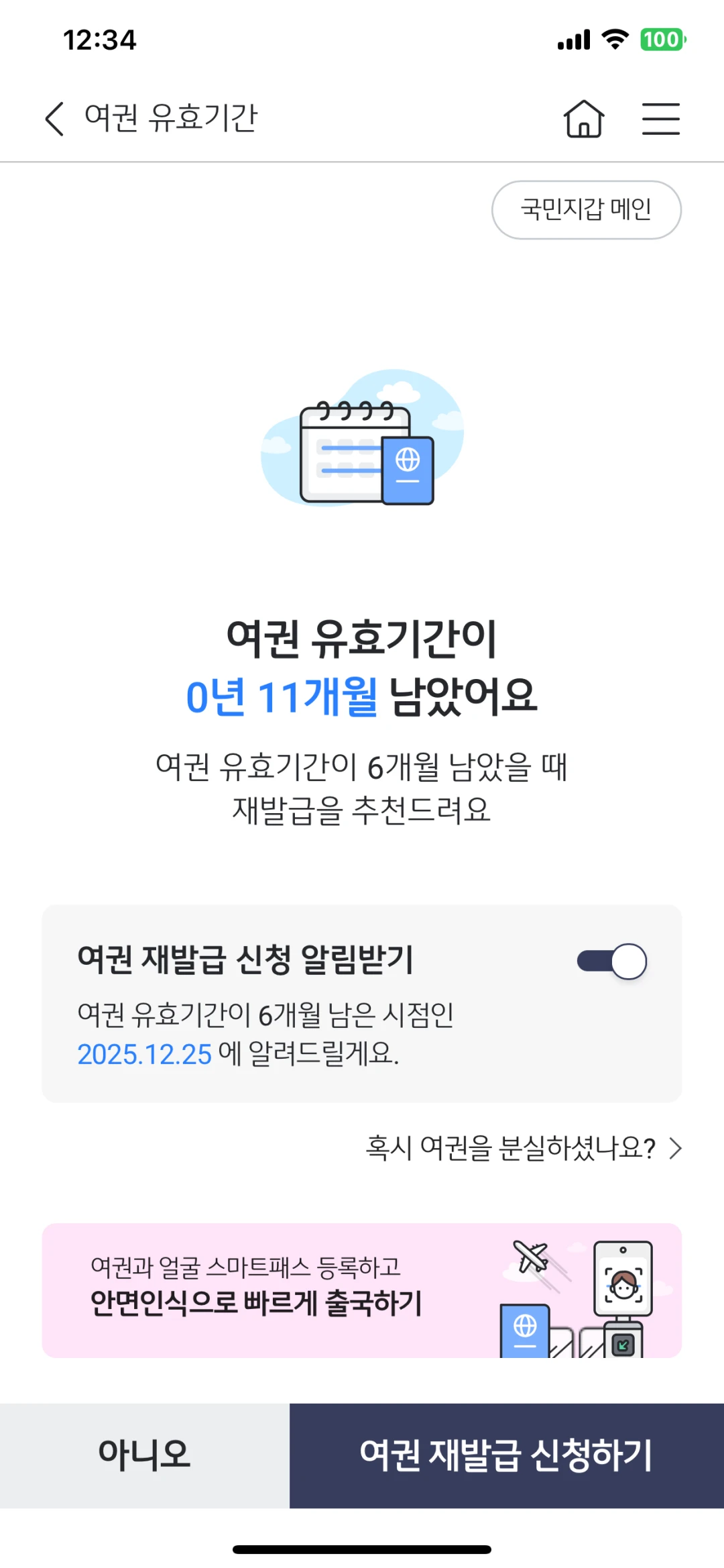 여권 유효기간에 따라서 재발급 여부를 알림을 주는 기능도 있으니, 활용해 보세요.