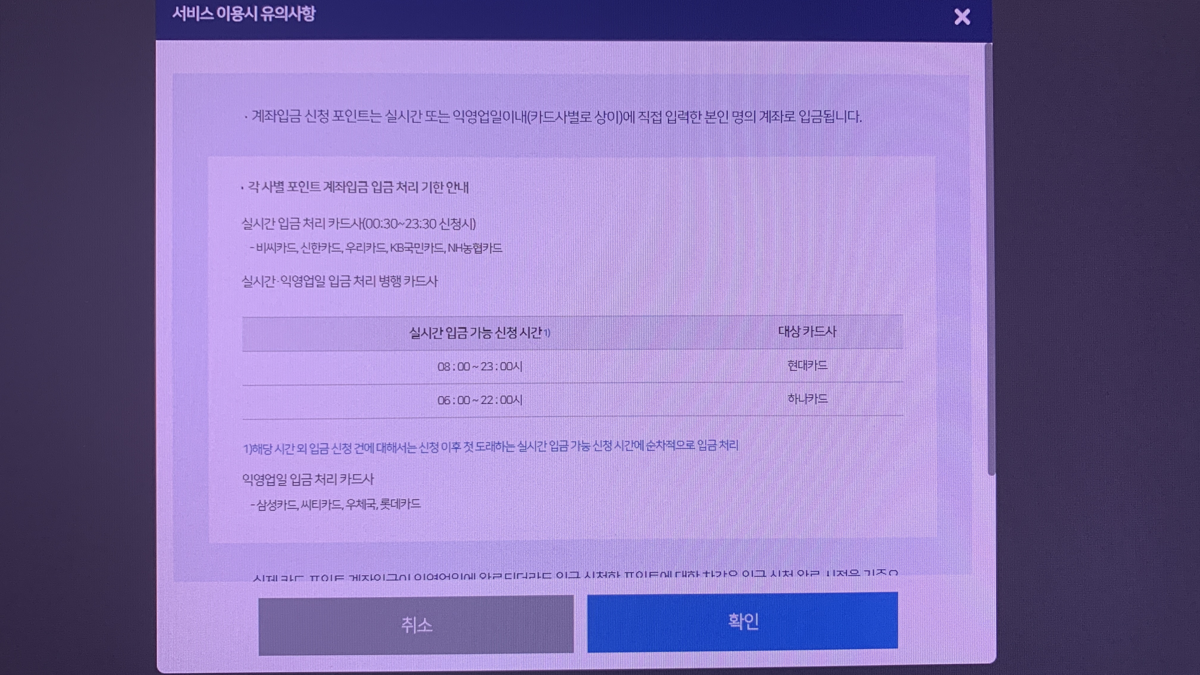 - 일부 카드사는 최소 포인트 기준이 있을 수 있으니 확인이 필요합니다.