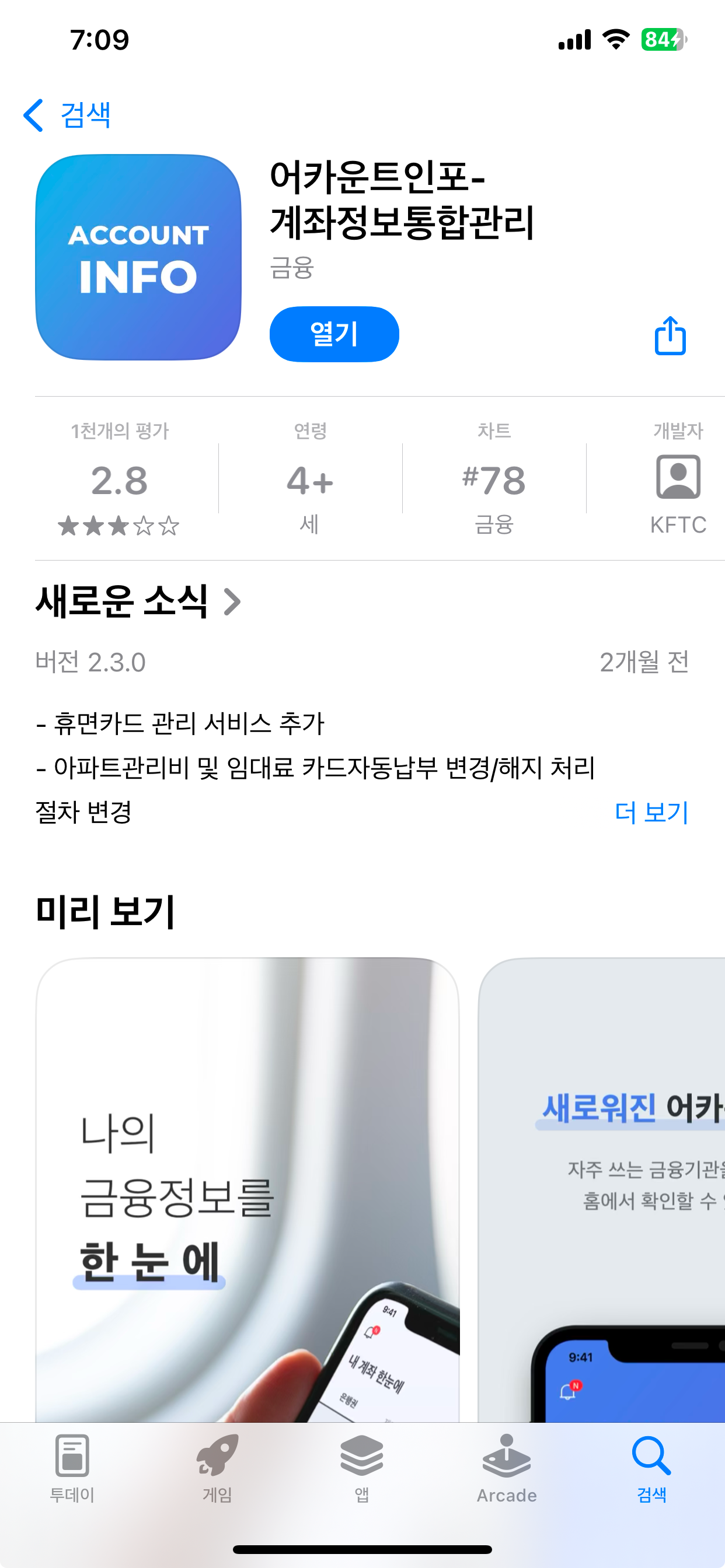 여신금융협회 카드포인트 통합조회를 위한 앱은 바로, 어카운트인포 앱인데요.