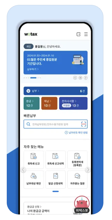 또한 위택스 앱에서 지원하는 기능에 대해서 좀 알고 있으면 좋겠죠?