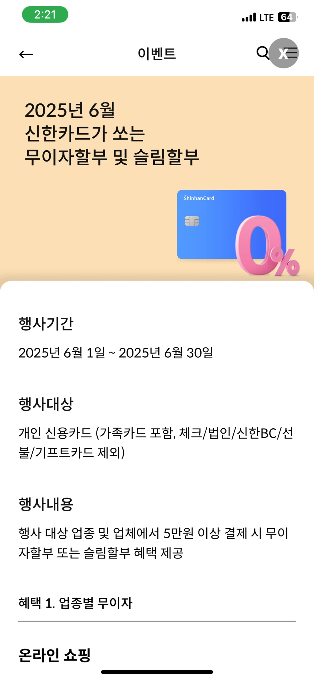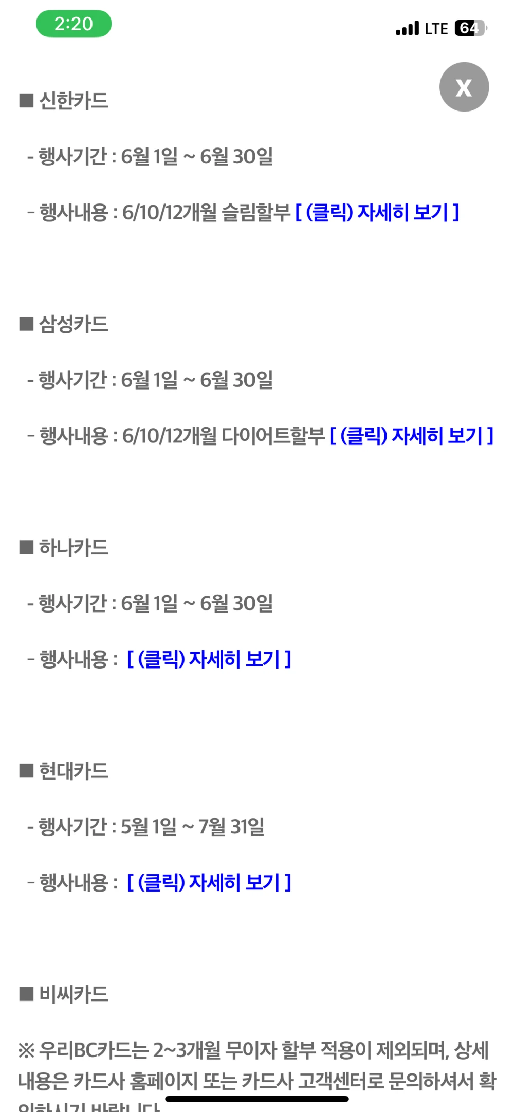 보통 6월 말일을 기점으로 6월 한달간 무이자 이벤트를 했던 것으로 보이네요.