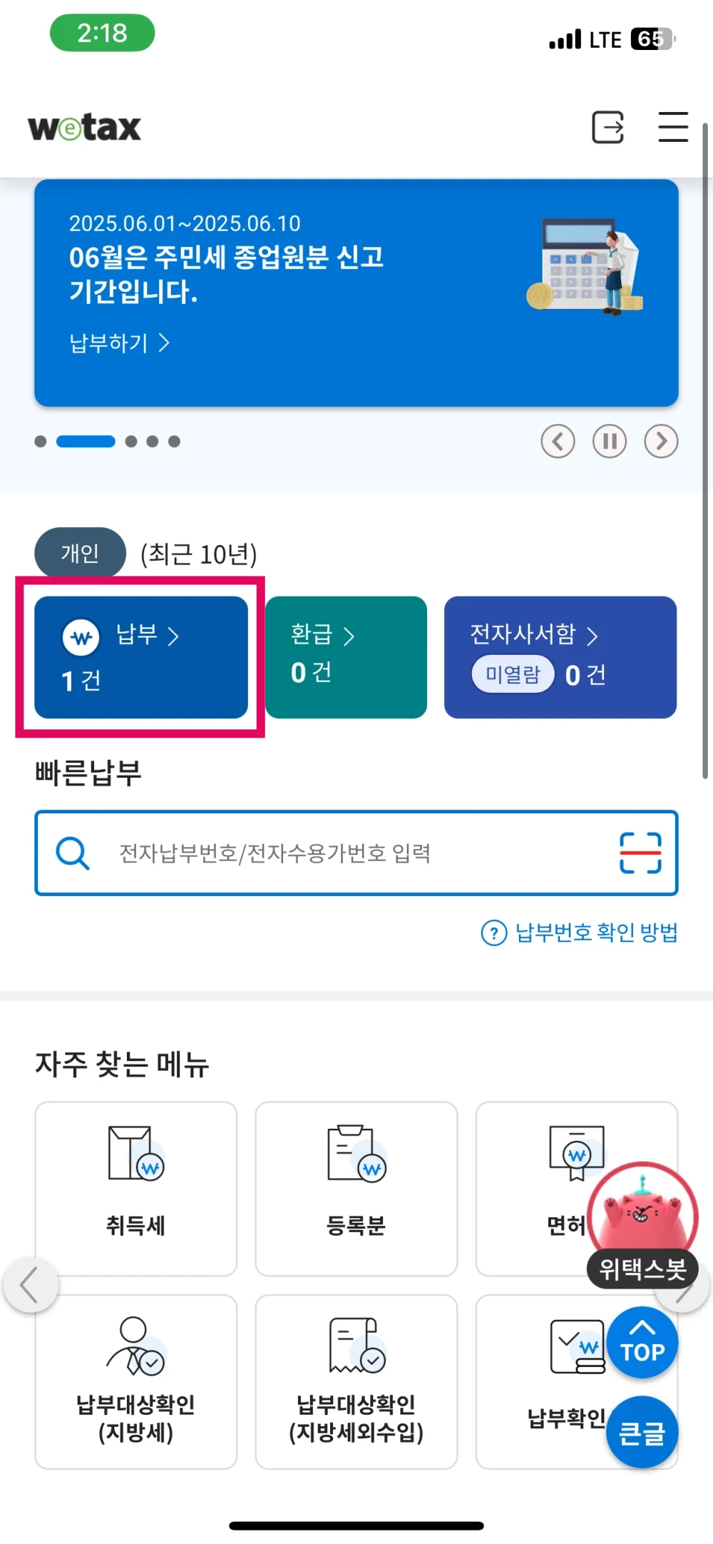 아래는 위택스 앱에서 바로 확인할 수 있도록 배려한 모습입니다.