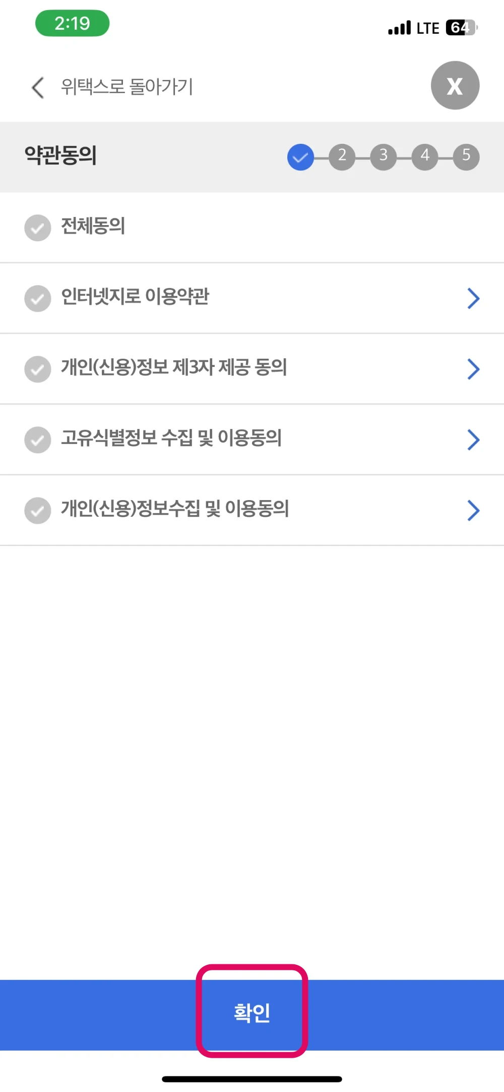 6. 약관 동의 체크 후 '확인'을 눌러 주세요.