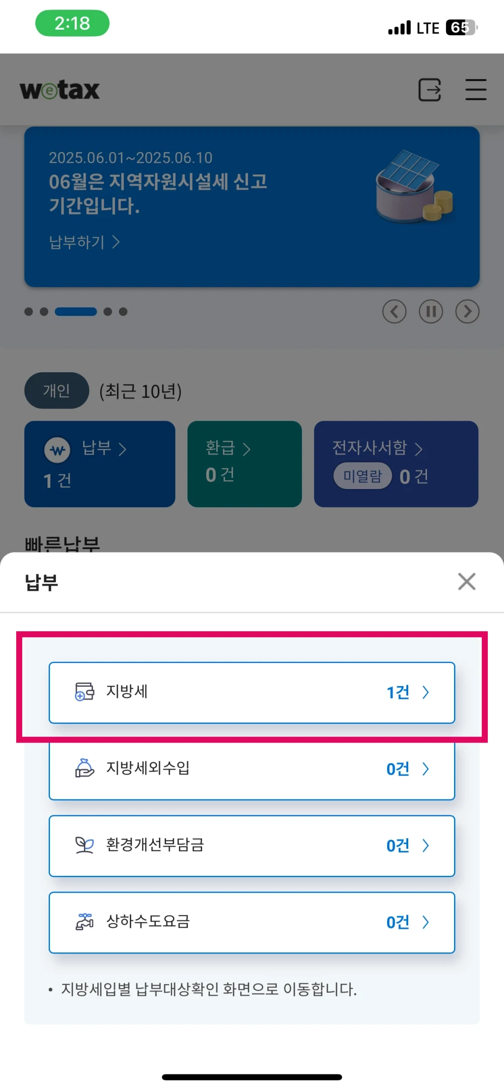 3. 지방세를 눌러 주세요.