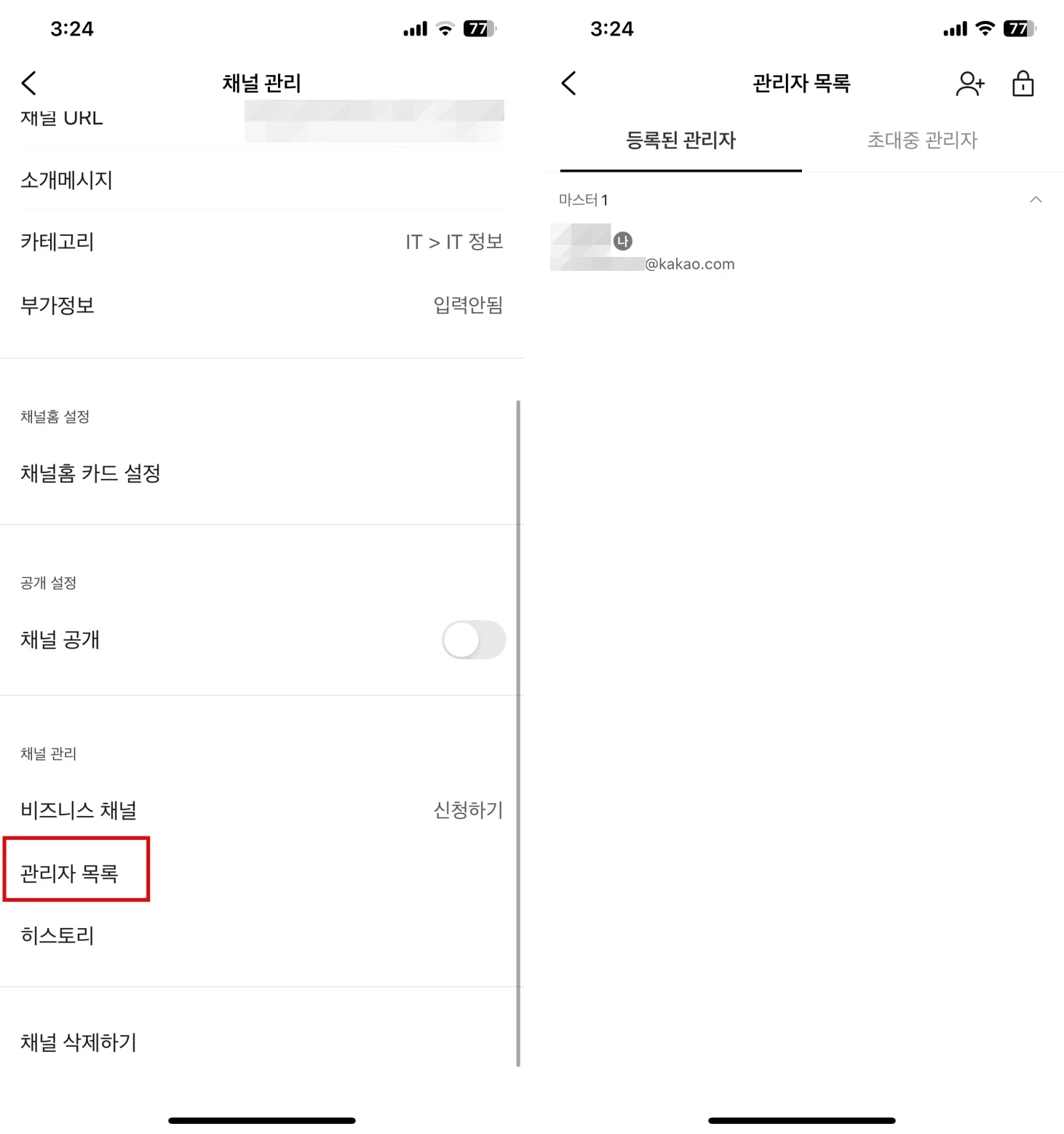 카카오톡 채널 마스터 매니저 차이 알아보기