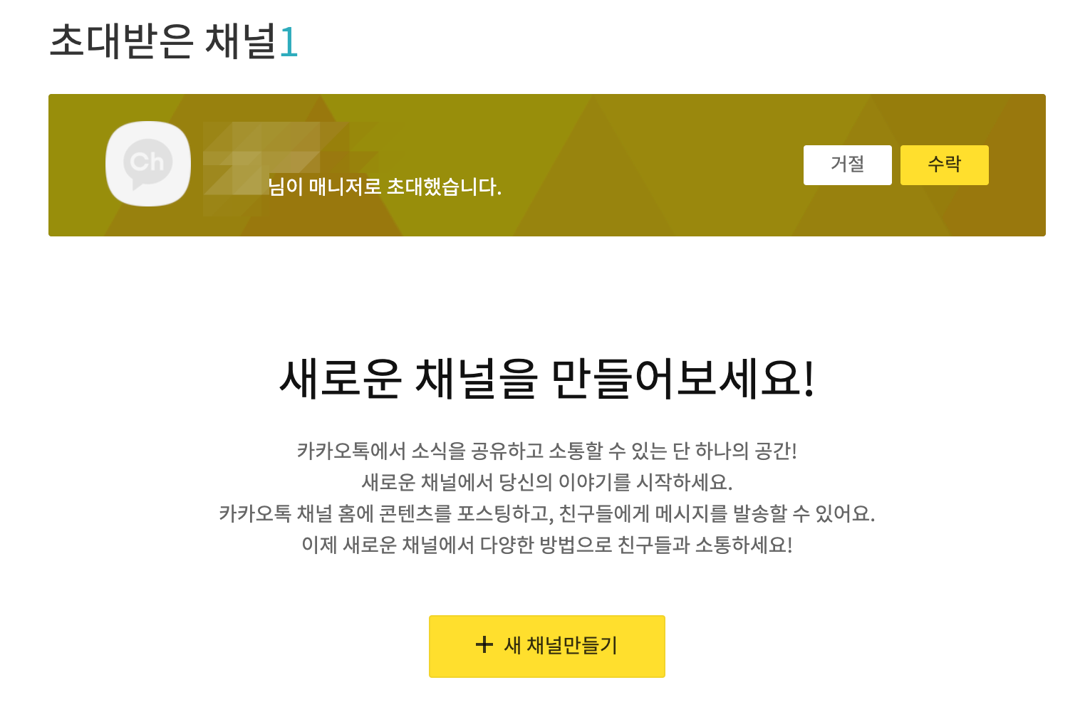 상대방이 이메일에서 '수락하러 가기' 버튼을 누르게 되면 초대받은 채널앱에서 수락만 하게 되면 공동 운영이 시작이 되는 것이죠.