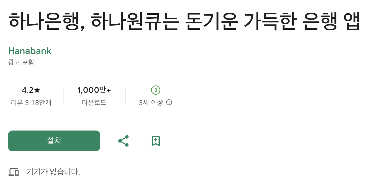 하나은행 앱설치는 모든 안드로이드 iOS 기기에 설치하고 사용하실 수 있습니다.
