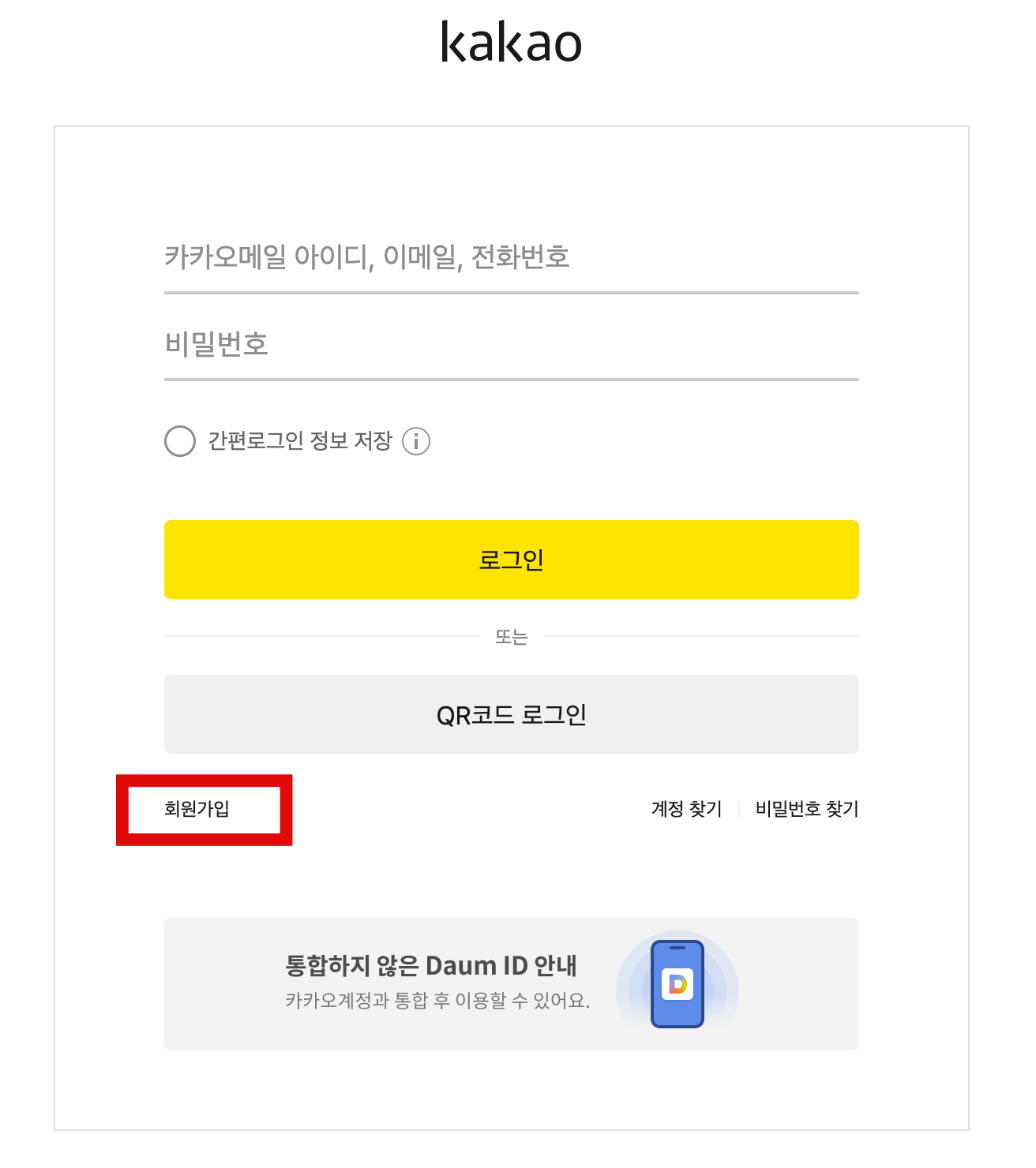 Daum 메인 페이지에서 상단 메뉴의 로그인 버튼을 클릭한 뒤,