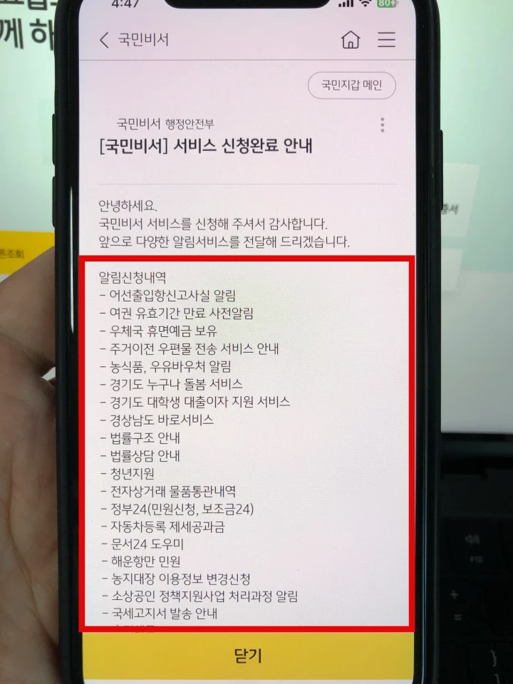 국민비서 행정안전부 서비스 - 알림 신청내역