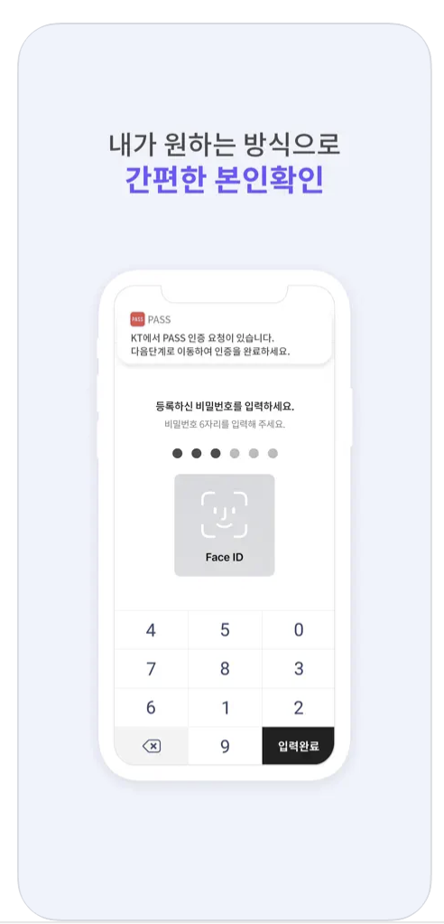 - 간편 본인 인증: 6자리 PIN 번호나 생체인식(지문, 얼굴, FaceID 등)으로 빠른 인증이 가능합니다.