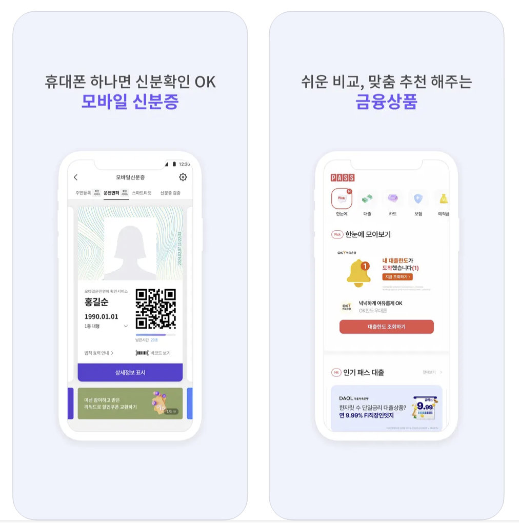 • 모바일 신분증: 운전면허증, 주민등록증을 앱에 넣고 사용해도 돼요.