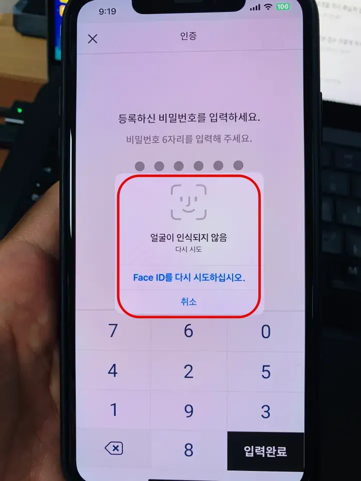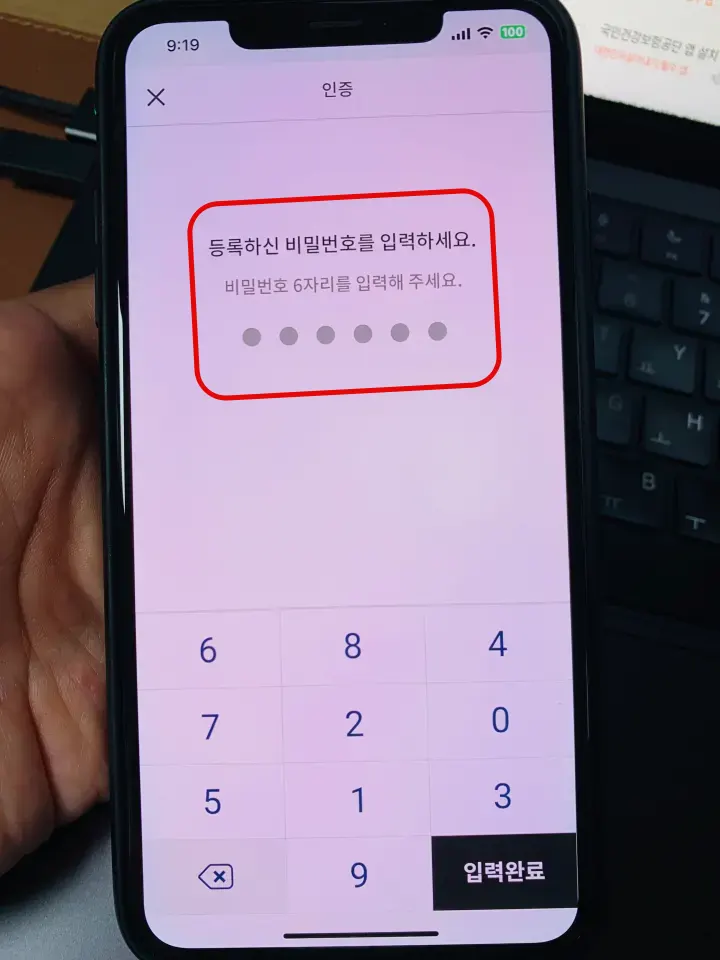 비밀번호 인증 수단 상태라면 아래와 같이 6자리 숫자를 눌러야 합니다.