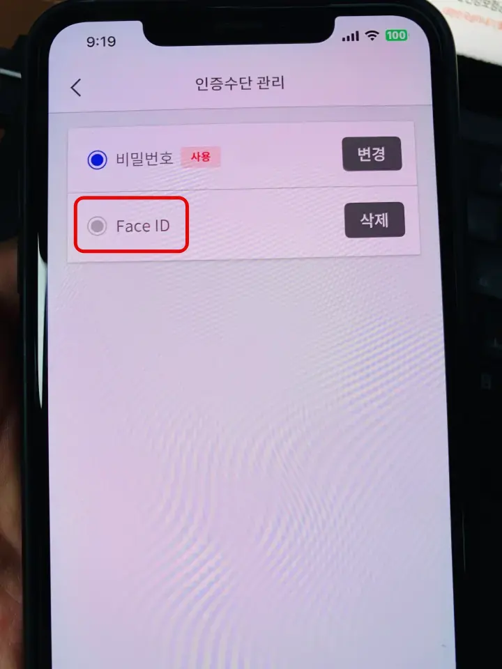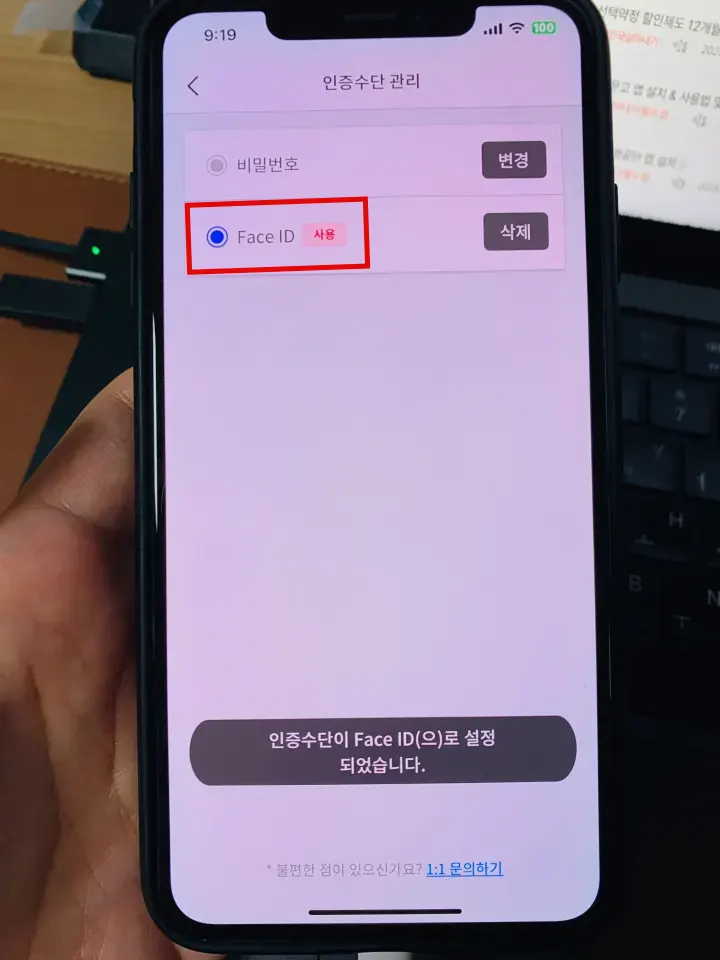 7. Face ID 인증수단 변경이 완료됩니다.