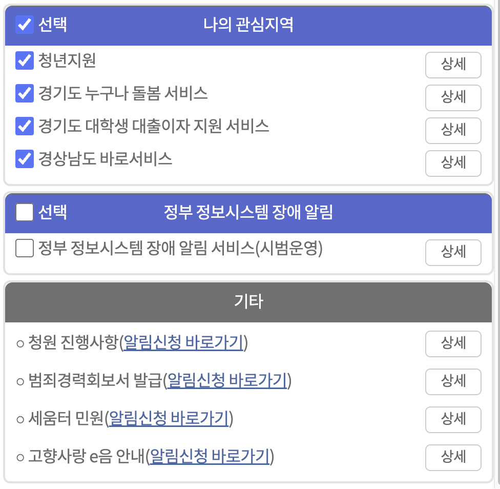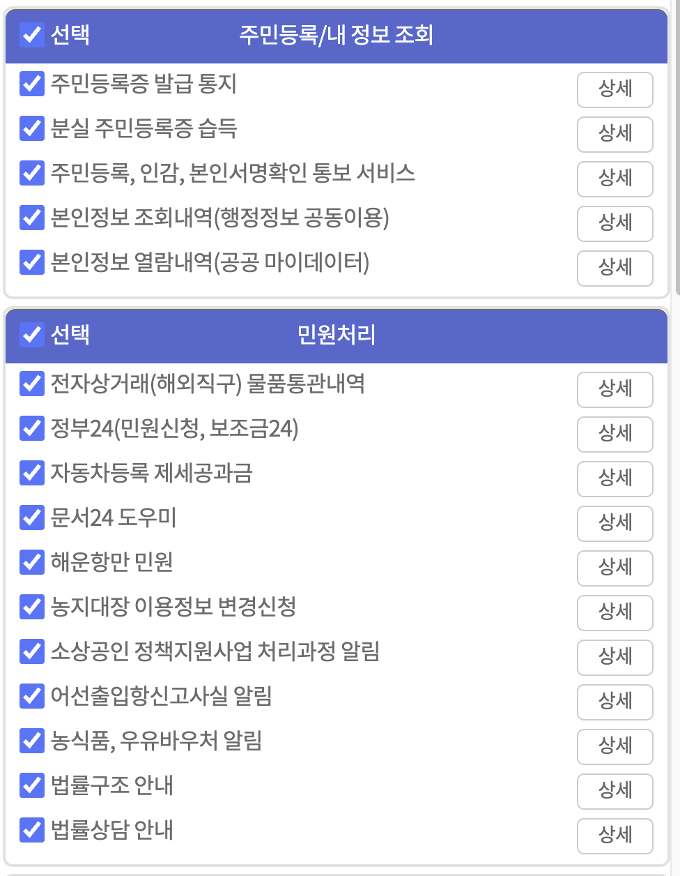 5단계: 국민비서 알림서비스 수신받을 앱 선택하기